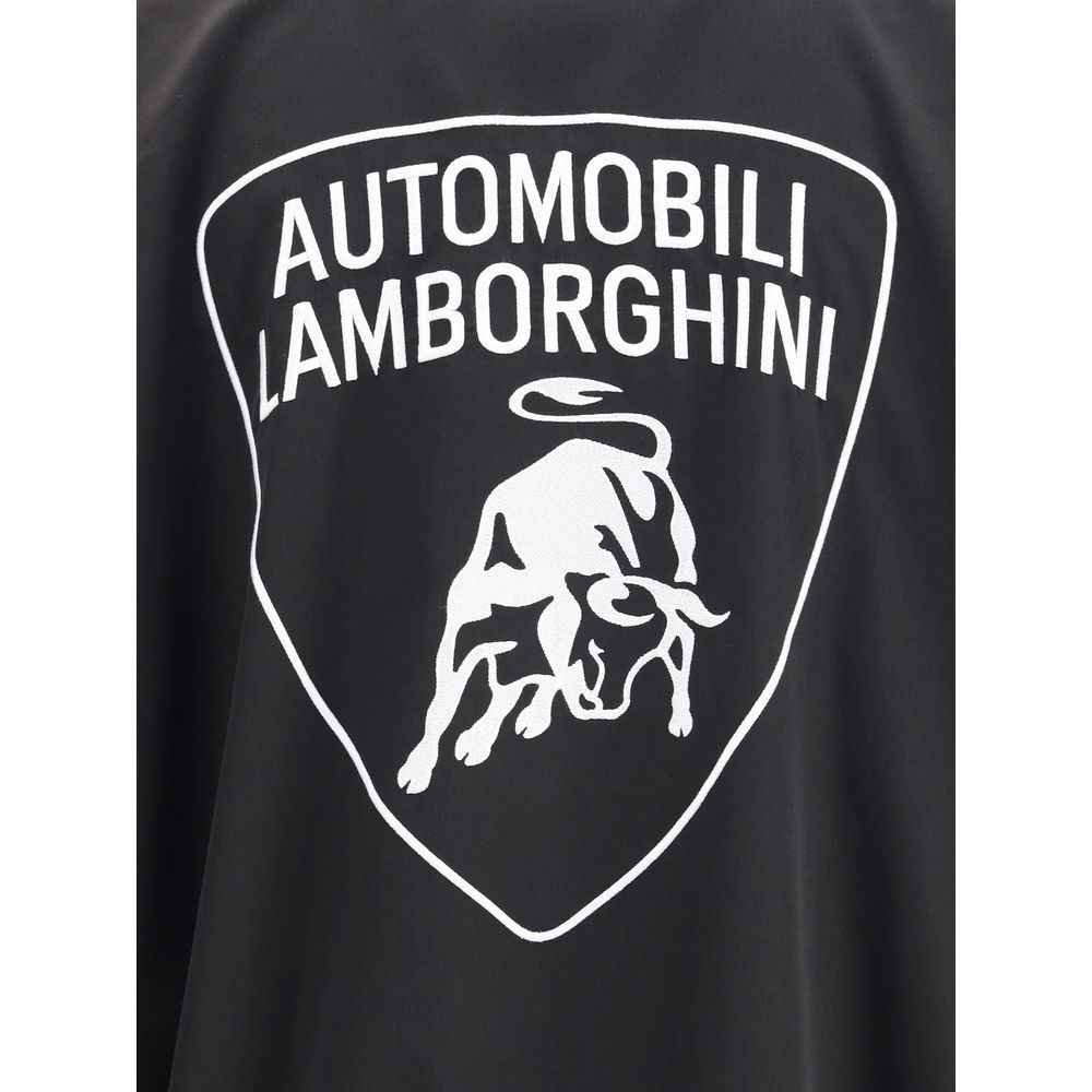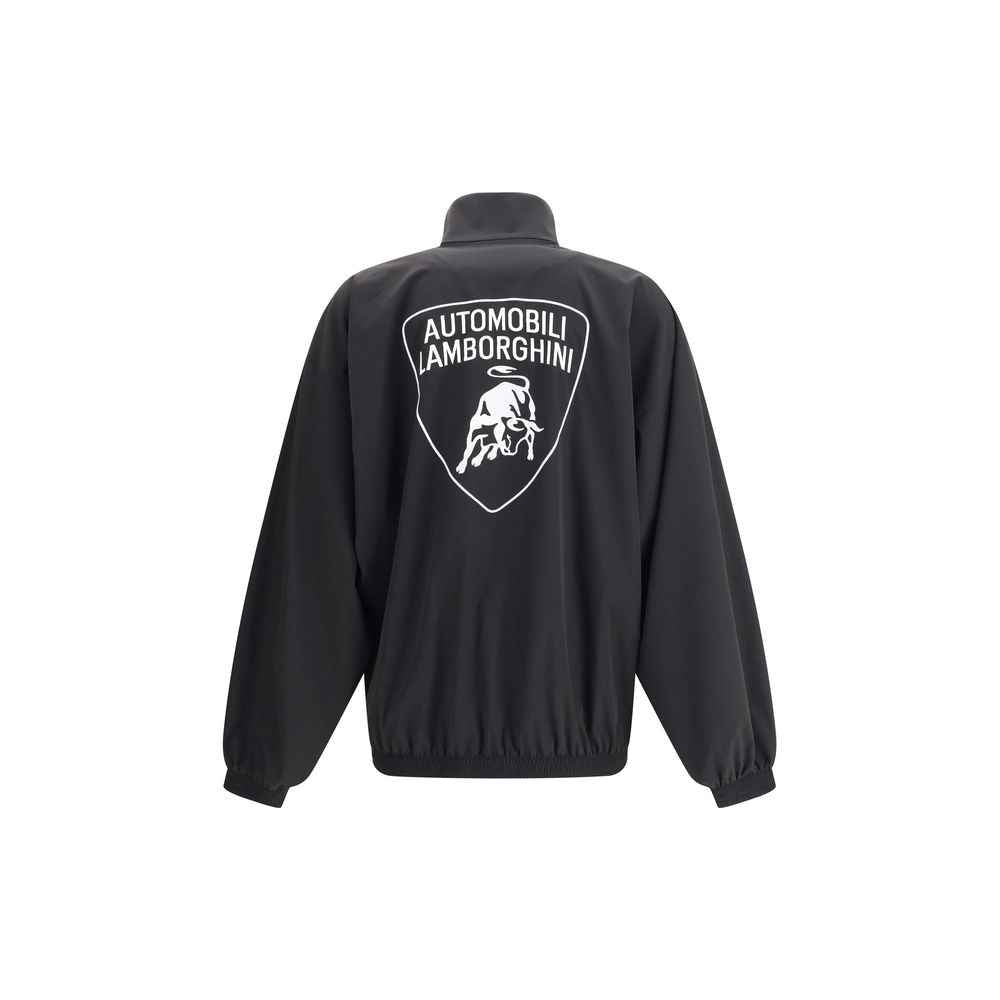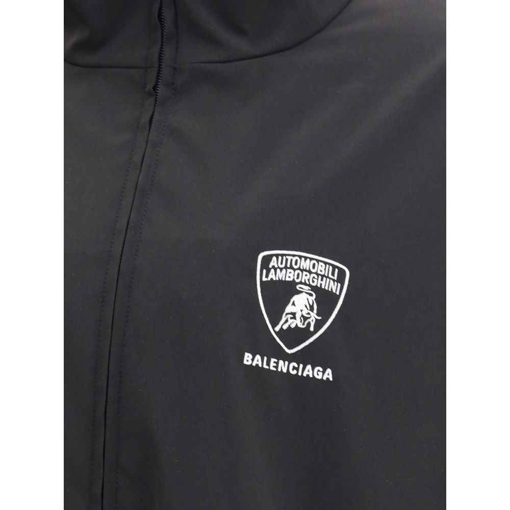 Waterproof Jacket by Balenciaga, featuring a functional and modern design. It features a high collar and a double-slider front zipper closure for protection and versatility. Equipped with two side welt pockets with zipper closure, it combines practicality and aesthetics. The front is embellished with the iconic Balenciaga monogram flanked by the contrasting Automobili Lamborghini logo, while the back features the embroidered logo of the historic automotive brand. Elasticized cuffs and hem complete the garment for a comfortable and secure fit. A piece that blends urban style and sporty spirit.