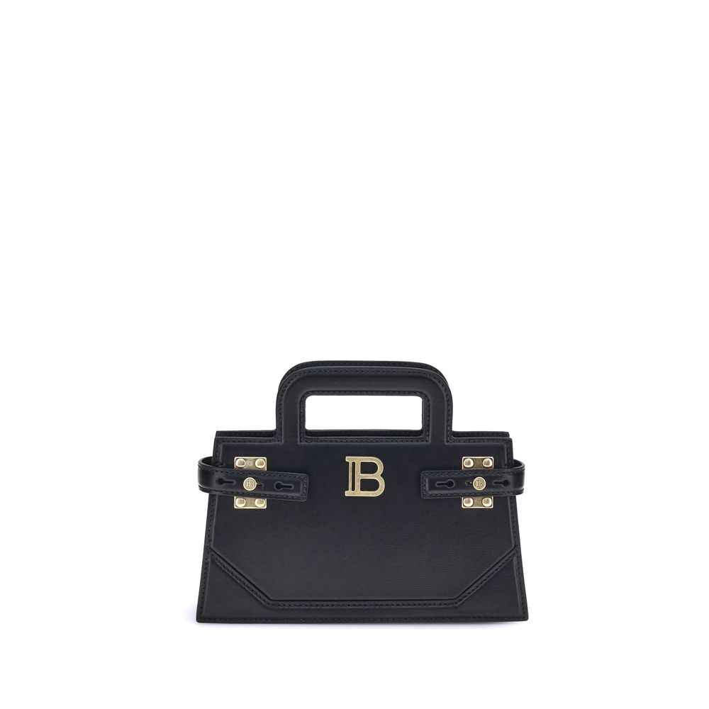 Balmain’s B-Buzz small Handbag features two top handles and a removable chain strap, adding to its versatility. The metal "B" logo, the brand’s distinctive symbol, stands out on the front. Side buckles adjust the width and closure of the panels, lending a personalized touch to the design. Inside, a single compartment with card pocket offers practicality and order. A stylish and functional accessory, perfect for any occasion.