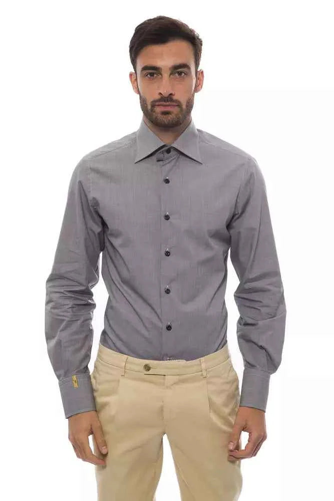 Elevate your wardrobe with the epitome of sophistication from Billionaire Italian Couture. This shirt, tailored to a medium fit, boasts an embroidered monogram “b” exuding understated luxury with every detail. From the small leaf collar down to the personalized buttons, it speaks volumes of your refined taste. Crafted from premium cotton and hailing from Italy, this black and white piece seamlessly blends comfort with high-end fashion.