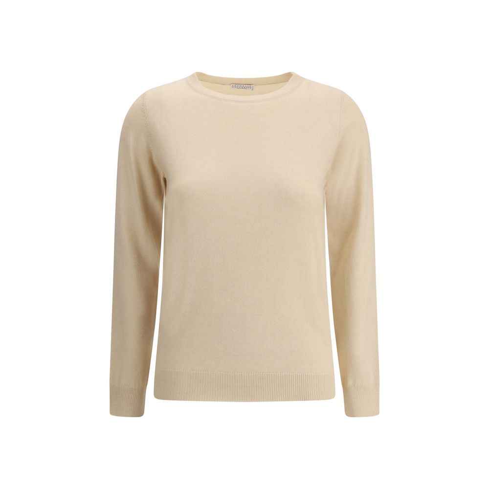 The Brunello Cucinelli cashmere Sweater is a luxurious and versatile piece, featuring a ribbed crew neck that gives it a refined look. The ribbed cuffs and hem ensure a comfortable and well-structured fit. The monochrome pattern gives it an elegant and easy-to-match look, making this sweater an essential element for a sophisticated and contemporary wardrobe.
