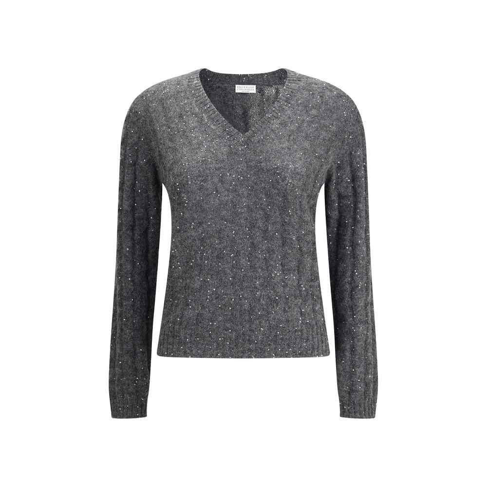 The Dazzling Cable Sweater combines traditional knitwear with a contemporary twist thanks to the braided knit that creates a three-dimensional effect on the surface. Made from a fine blend of mohair, cotton and wool, the garment is enriched with luminous sequin highlights that enhance its quality. Lightweight and enveloping, the sweater features a classic V-neckline, with a fit that gently caresses the body, offering the perfect balance between elegance and comfort.