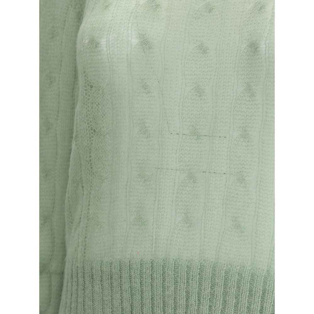 Brunello Cucinelli’s mohair and wool Sweater features a braided weave with a slightly sheer effect, adding a touch of lightness and sophistication to the garment. The ribbed crew neck, ribbed cuffs and ribbed hem ensure a comfortable, structured fit. This sweater is perfect for an elegant and refined look, ideal for the fall and winter season, combining warmth and style with a touch of originality.