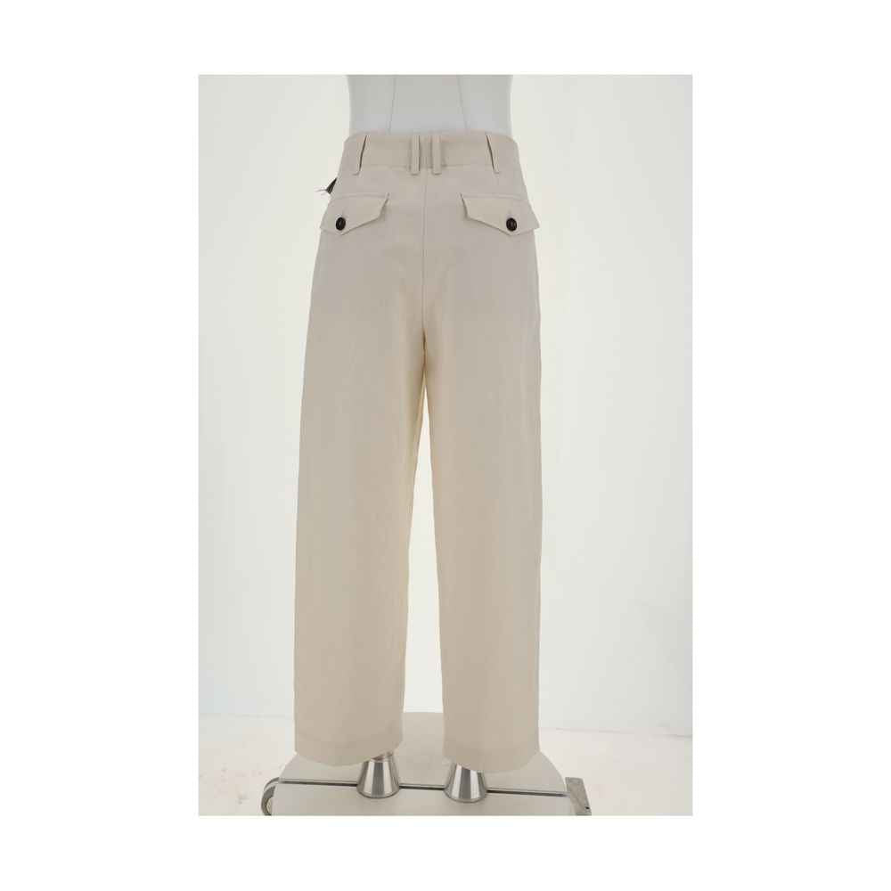 Cotton Pants by Brunello Cucinelli, baggy ankle-length design, front zipper and button closure, belt loops waistband, two slash pockets, two welt back pockets with flap and buttons, monochrome pattern, regular fit.