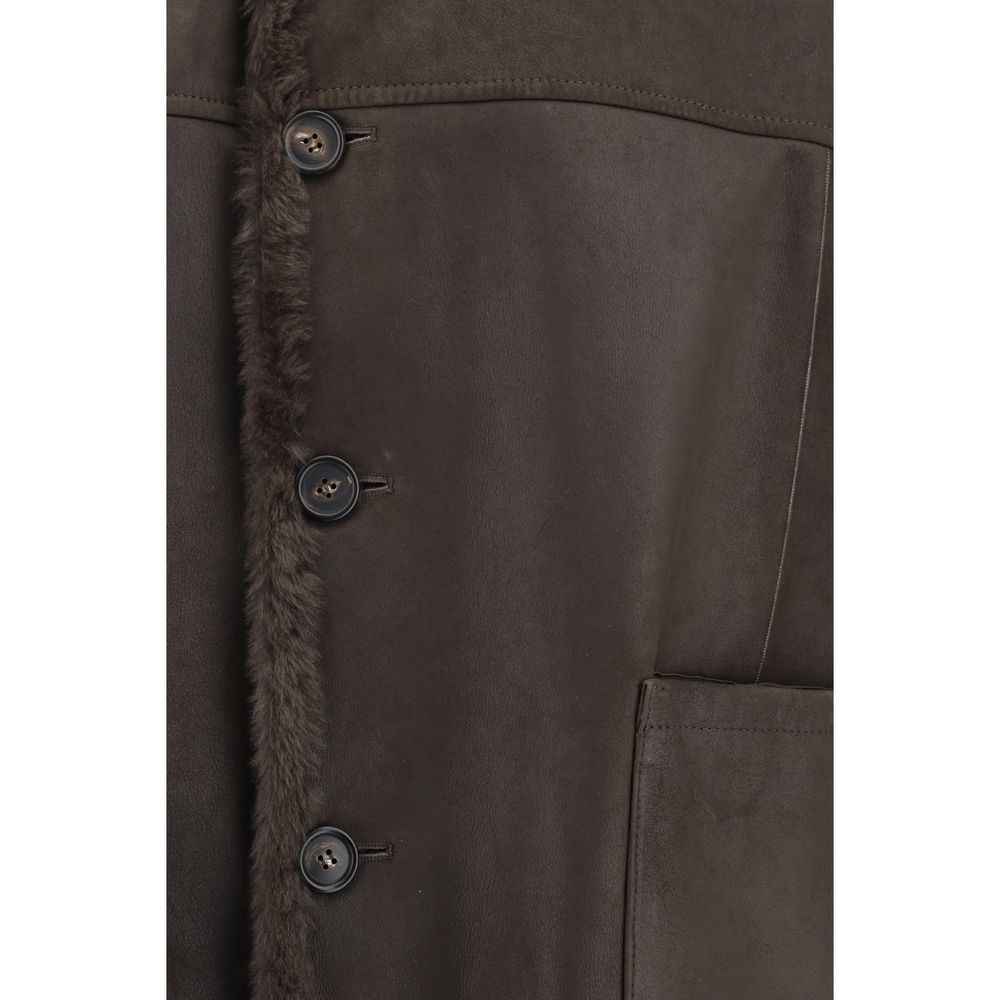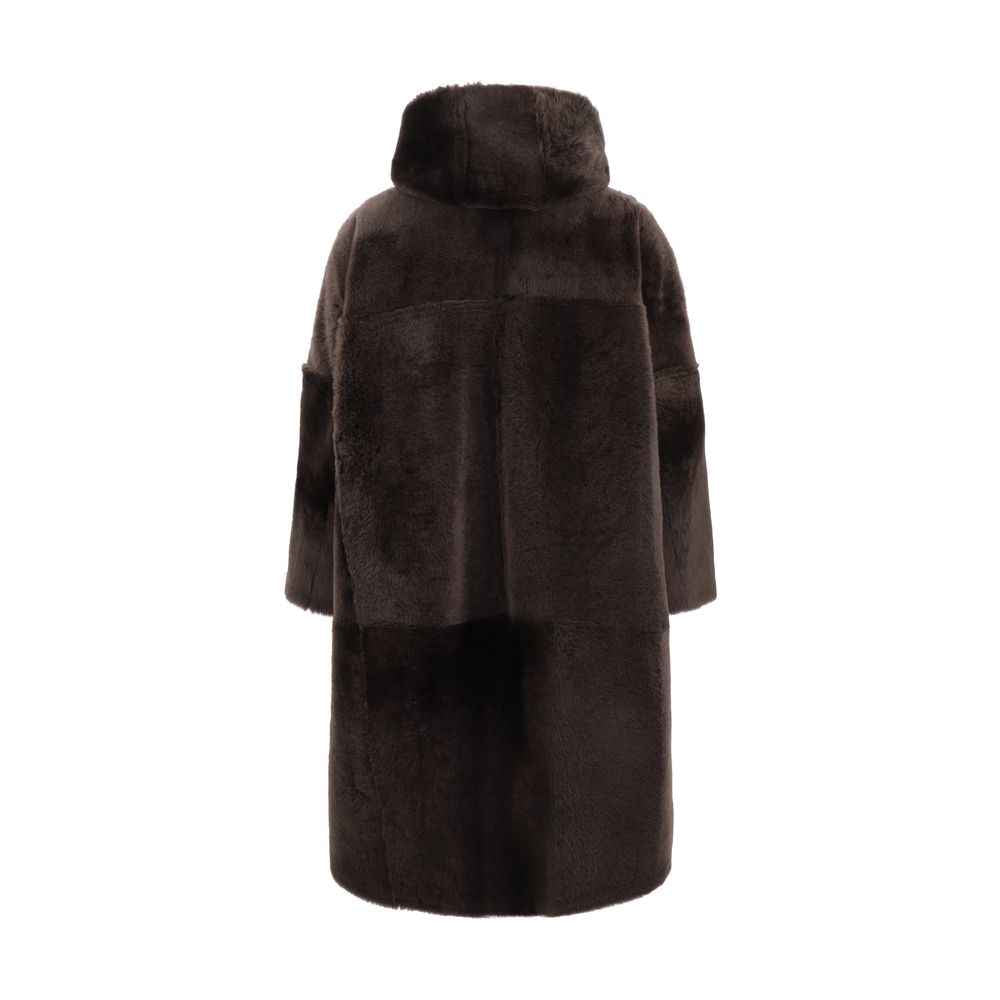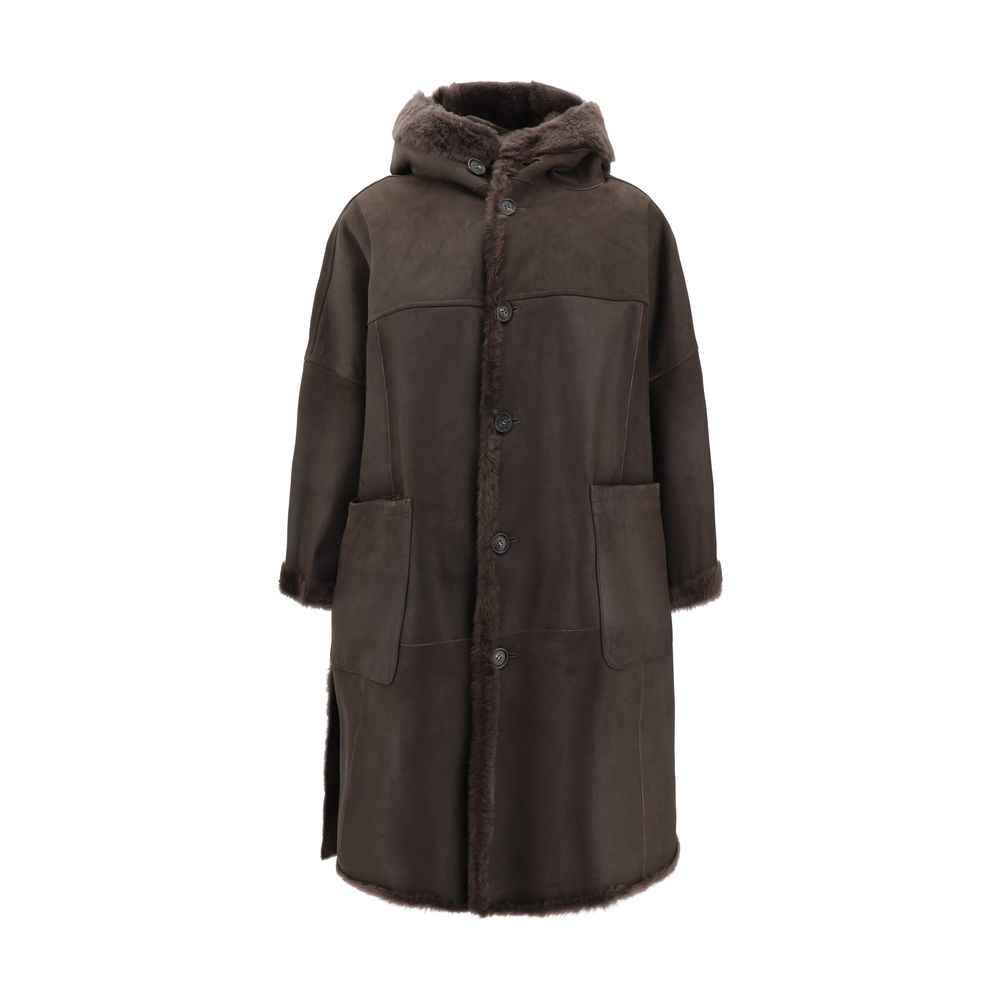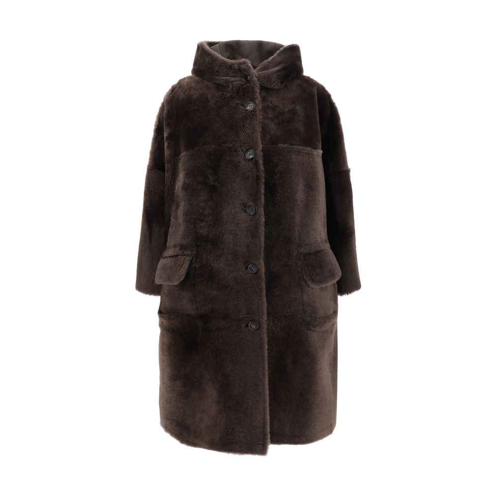 Brunello Cucinelli’s reversible Fur is a luxurious and versatile garment with a long pattern and a hood that provides comfort and protection. The front button closure adds an elegant touch, while the two welt pockets with flaps offer functionality. The opposite side, made of leather, features patch pockets that enrich the design, creating a sophisticated contrast between the materials. An ideal garment for those seeking a refined and practical style without sacrificing quality.