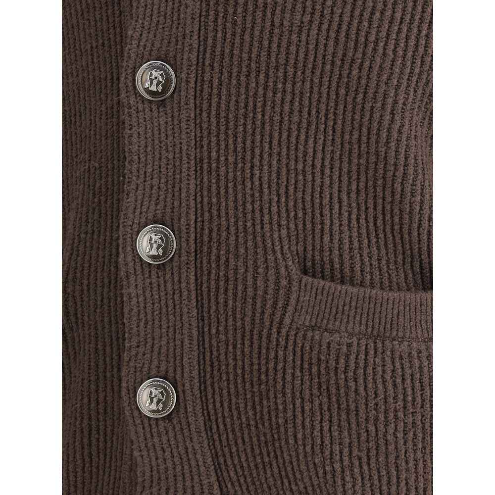 Brunello Cucinelli’s cotton Cardigan is an elegant and versatile piece, featuring a shawl lapel that adds sophistication. The front button closure, enhanced by the brand’s engraved logo detail, lends a distinctive touch. The two welt pockets on the front offer functionality and practicality, while the ribbed cuffs and hem ensure a snug, comfortable fit. The all-over repeated ribbed design adds texture and movement to the garment.