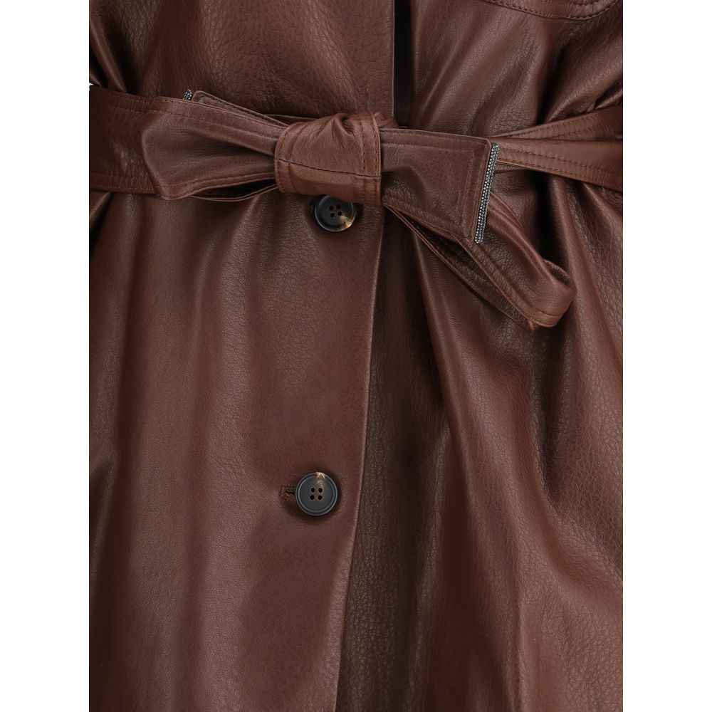Discover the elegance of Brunello Cucinelli's Saharan Leather Jacket. This refined piece combines classic charm with modern design, featuring a classic collar and front button closure for a sophisticated silhouette. Practicality meets style with two front patch pockets and side welt pockets. The knotted sash at the waist allows for a customizable fit, enhancing your shape beautifully. Crafted from 100% Calf Leather Bos Taurus, this jacket showcases Italian craftsmanship and is perfect for the AW25 season. Elevate your look with this versatile and stylish addition to your wardrobe.