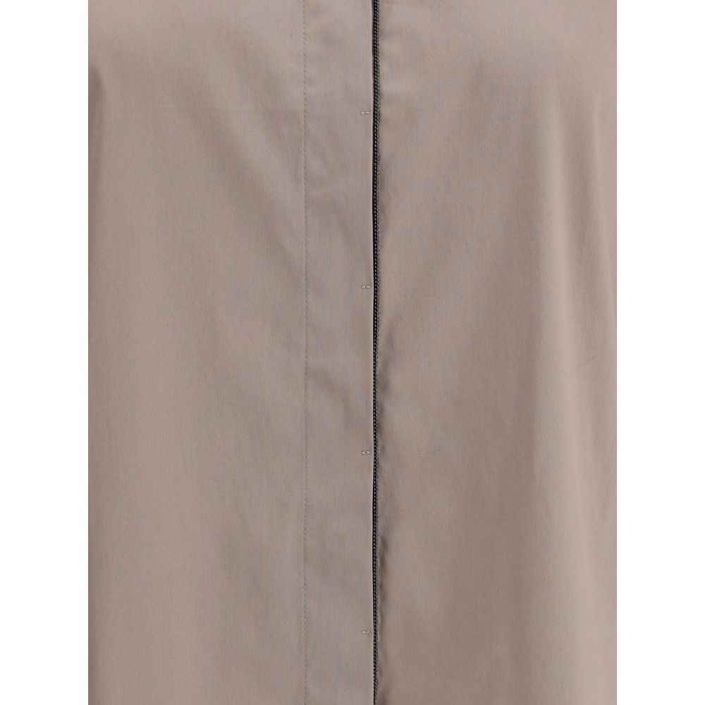 The Cotton Shirt by Brunello Cucinelli is an elegant and refined piece, characterized by a classic collar that gives it a timeless look. The front closure with hidden buttons, embellished with iconic jewels, adds a touch of luxury and sophistication. The adjustable cuffs with buttons allow you to adapt the fit for greater comfort. The monochrome pattern gives it a clean and versatile look, making this shirt perfect for both formal and casual combinations, without ever sacrificing class.