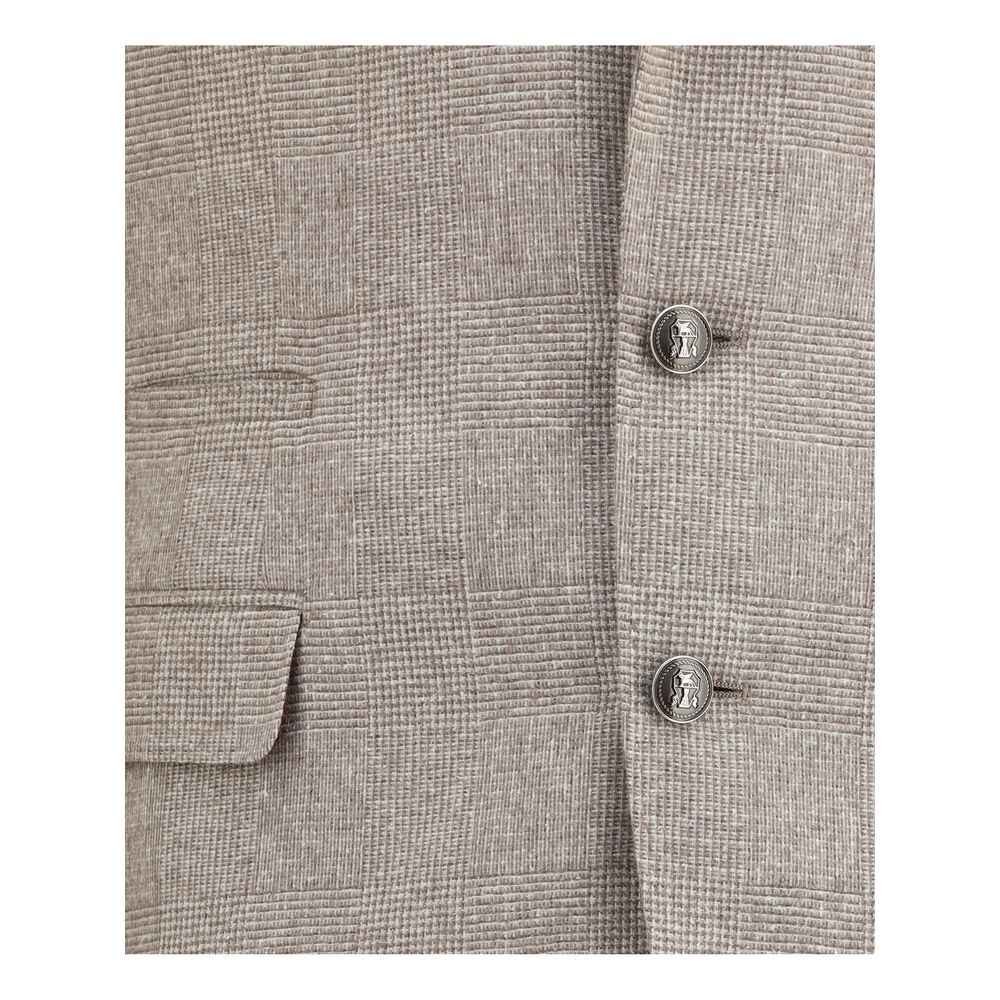 Brunello Cucinelli’s silk and wool Suit is a perfect example of timeless elegance, made from the highest quality materials. The blazer, featuring peaked lapels, has three welt pockets with patina, adding a touch of understated sophistication. The three-button front closure lends a balanced and sophisticated look, while straight pants with turn-ups complete the ensemble with a clean, modern silhouette. The trouser closure features a zipper, hook and button, with belt loops on the waistband for added comfort and personalization. The stylish and versatile check pattern adds a distinctive detail that makes the ensemble suitable for a variety of occasions, giving it an understated yet contemporary touch of class.
