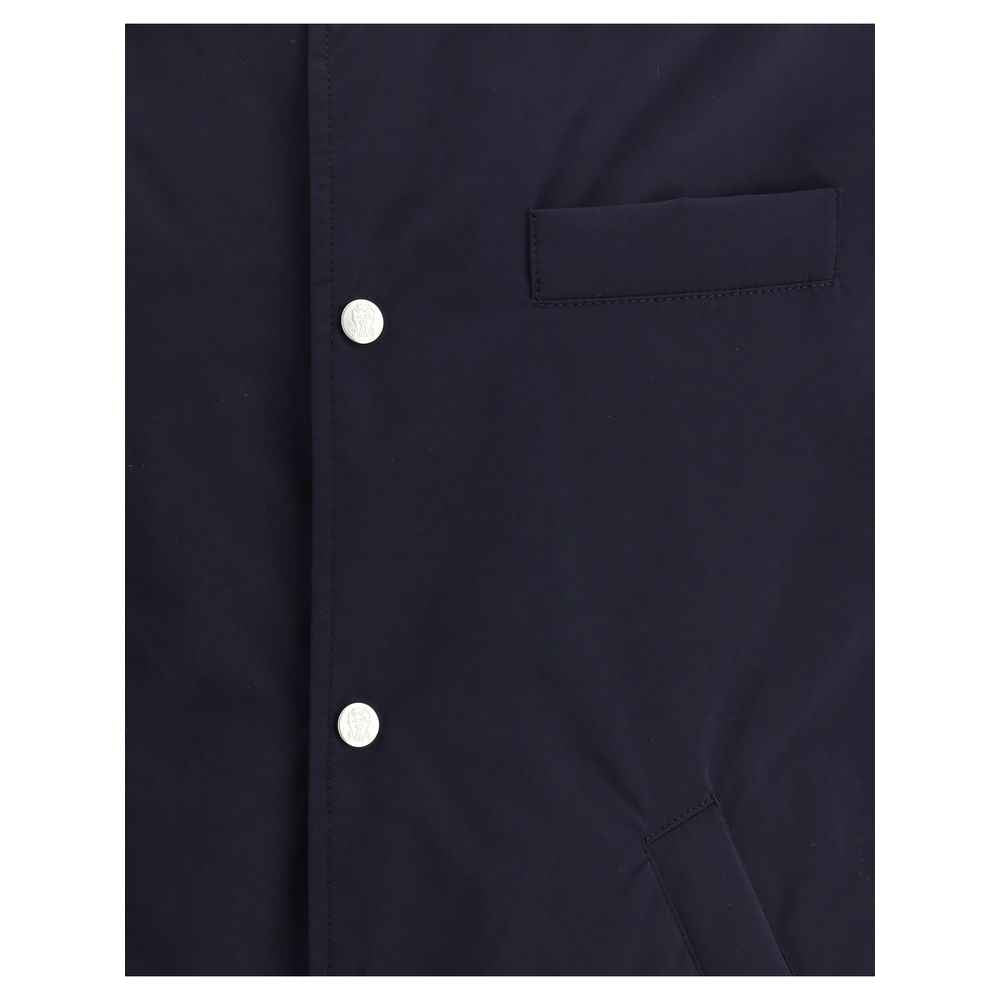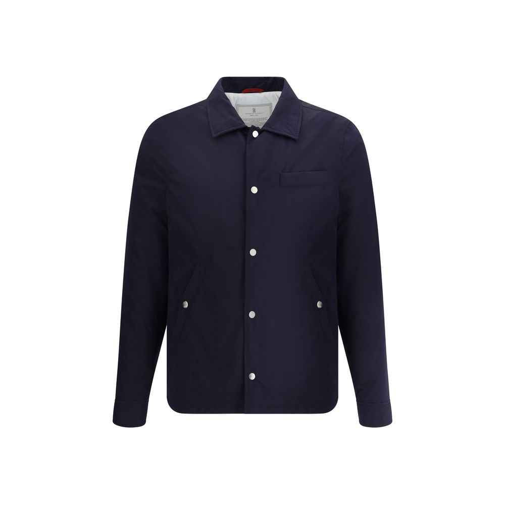 Water-repellent microfiber Jacket with Thermore® padding by Brunello Cucinelli features a shirt design that combines elegance and practicality. The classic collar lends a touch of sophistication, while the front button closure ensures a comfortable and functional fit. The two side welt pockets, closed with buttons, provide secure space for small items. Adjustable button cuffs allow for customization of the fit, making the garment even more versatile. Thermore® padding offers excellent thermal protection without compromising lightness, making this jacket perfect for mid-season.