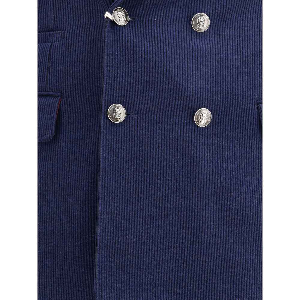 Brunello Cucinelli wool Suit elegant and sophisticated, ideal for a formal look or for refined occasions. The wool blazer jacket with corduroy workmanship features a front button closure, three flap welt pockets on the front and a slit pocket on the chest. The peak lapel adds a distinctive and classy touch. The matching trousers, also made of wool, feature a front zip and button closure, two side slash pockets, two back welt pockets and belt loops that allow for a tailored fit. The monochrome pattern enhances the line of the suit, combining sartorial elegance and contemporary comfort.