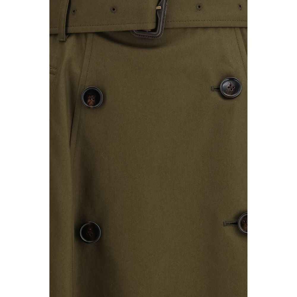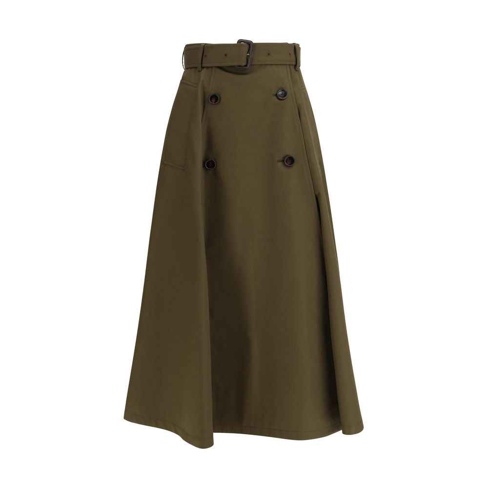 The trench midi Skirt by Burberry reimagines an iconic house style with contemporary elegance. Crafted from water-resistant cotton gabardine, it features a wrap closure with button and hook for a clean, structured look. The high-rise waist with belt loops is finished with a matching adjustable and removable belt, detailed with a leather B buckle, an iconic signature. Side welt pockets add discreet functionality, completing this refined, versatile piece.