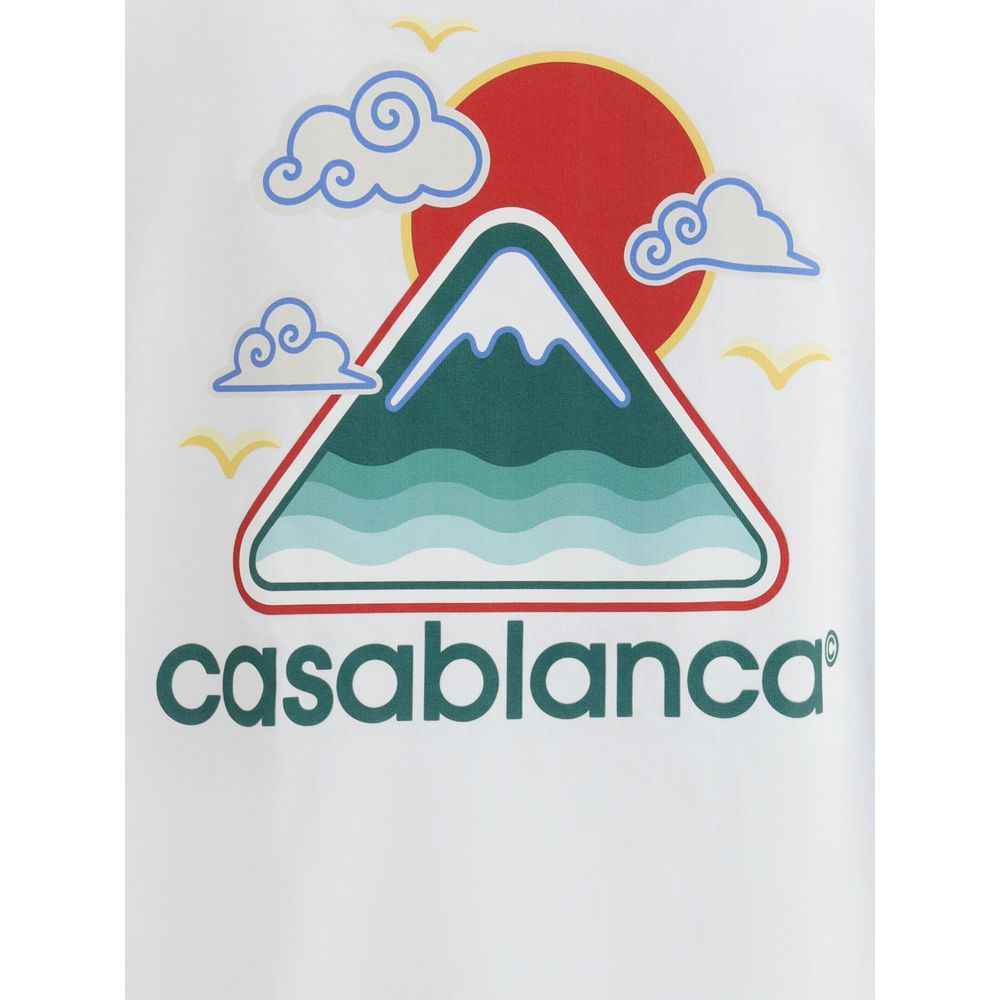 Soft cotton T-Shirt by Casablanca features the exclusive "Montagne Ondulée Screen" print on the front and back, inspired by the brand’s artistic and refined aesthetic. The ribbed crew neck offers comfort and a classic fit. A garment with a refined style, perfect to enrich your casual wardrobe with a distinctive touch.