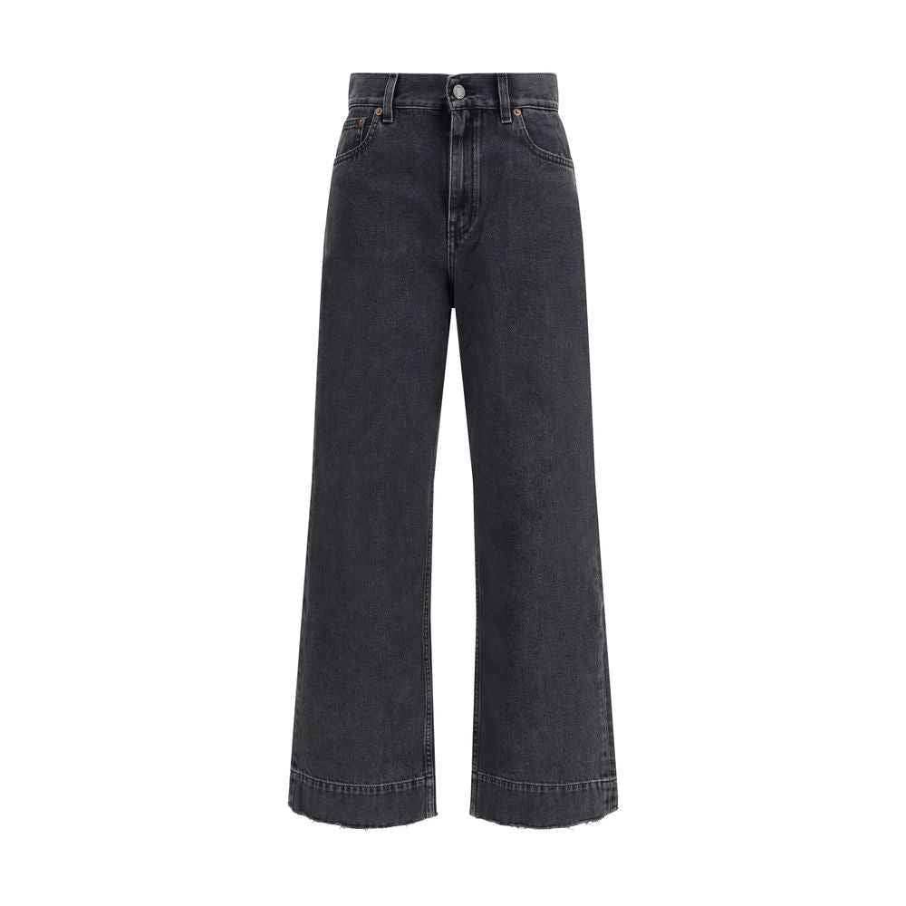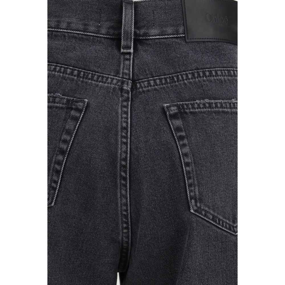 The High-Waisted Cropped Denim Jeans by Chloé combine contemporary ease with timeless appeal. Cut from premium denim, they feature a flattering high-rise waist, ankle-length silhouette, and classic five-pocket design. A logo-engraved button and zip fastening complete the front, while a signature Chloé leather patch on the back adds a refined finishing touch.