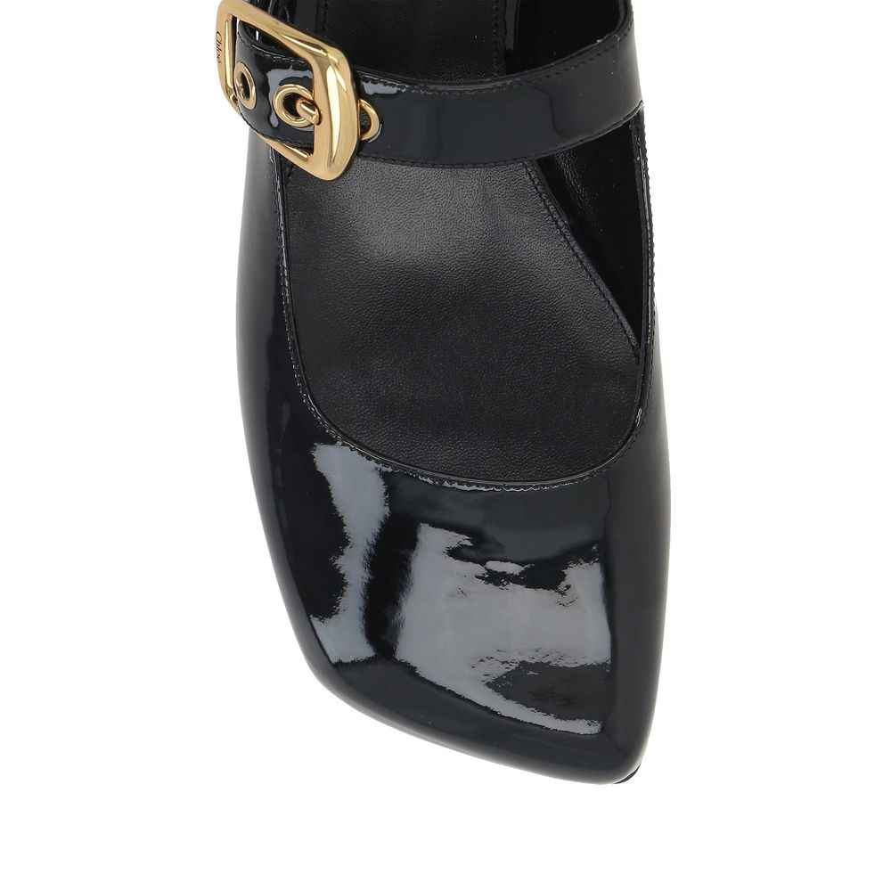 – Composition: 100% calf leather – Inner: Leather – Insole: Leather – Sole: Leather – Patent effect – Branded insole – Asymmetrical toe design – Oversized Gold buckle with Chloé engraving – Made in Italy – Gender: WOMEN –