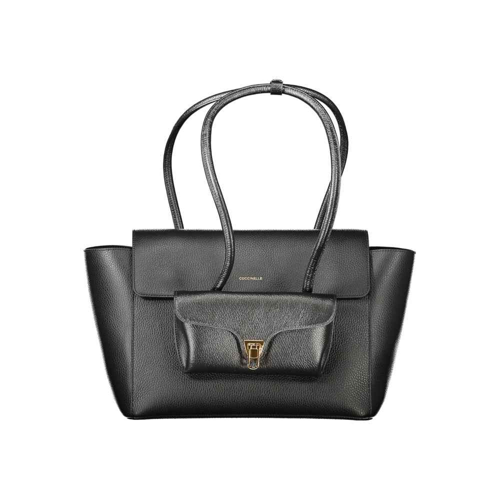 Elevate your accessory game with the Coccinelle Double Beat Bag, a sleek embodiment of sophistication and functionality. Crafted with exquisite Italian leather, this bag is designed to captivate with its elegant black hue and refined silhouette. Featuring two comfortable shoulder handles, it promises easy carrying, while the duo of internal pockets keep your essentials organized. Its standout detail? A chic, detachable external pouch that adds versatility and flair. Secured with a magnetic and turnbuckle closure and adorned with the iconic Coccinelle logo, it’s the epitome of style meets practicality.
