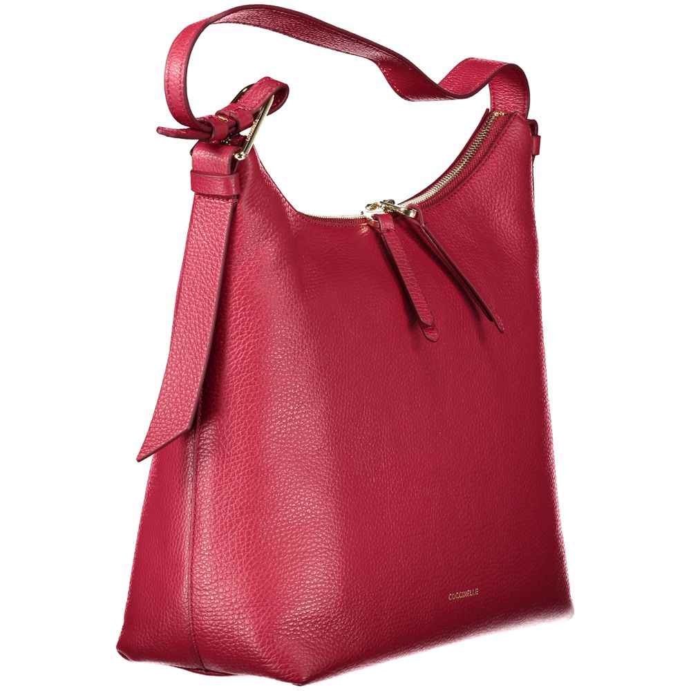 Exude sophistication and trendsetting style with the Coccinelle Malory Bag, a must-have for fashion connoisseurs. This red leather masterpiece boasts an adjustable shoulder strap for personalized comfort. Inside, the practicality shines with one internal pocket and dedicated spaces for your essentials, all secured with a sleek zip closure. The iconic Coccinelle logo is subtly placed, signaling high-fashion elegance with every carry.