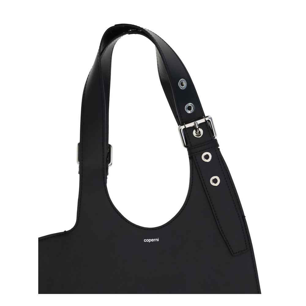 Coperni’s Belt Heart Shoulder Bag, made of smooth leather in a black leather, is a true declaration of love in the form of an accessory. Its unique and unmistakable shape lends an edgy touch, enhanced by the belted handle. Spacious and playful, it is perfect for those seeking a touch of originality in every detail.