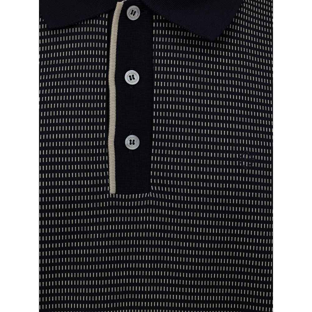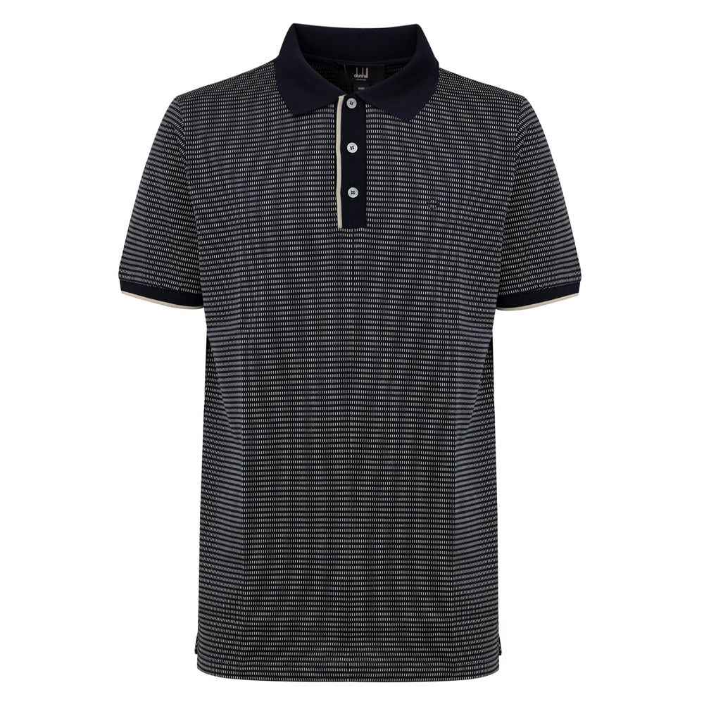 Dunhill Jacquard Print Navy Blue Cotton Polo. In blue cotton, knitted collar, button fastening, jacquard fabric. Regular fit