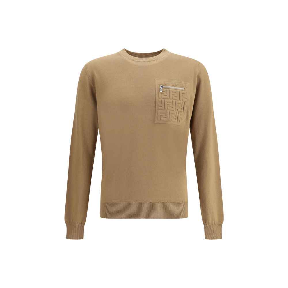 Virgin wool Sweater by Fendi features a ribbed crew neck, cuffs and hem for a comfortable and defined fit. The zippered slit pocket adds a practical and modern touch, while the iconic embossed FF logo gives the garment a distinctive and luxurious detail. A stylish and functional design, ideal for sophisticated looks.