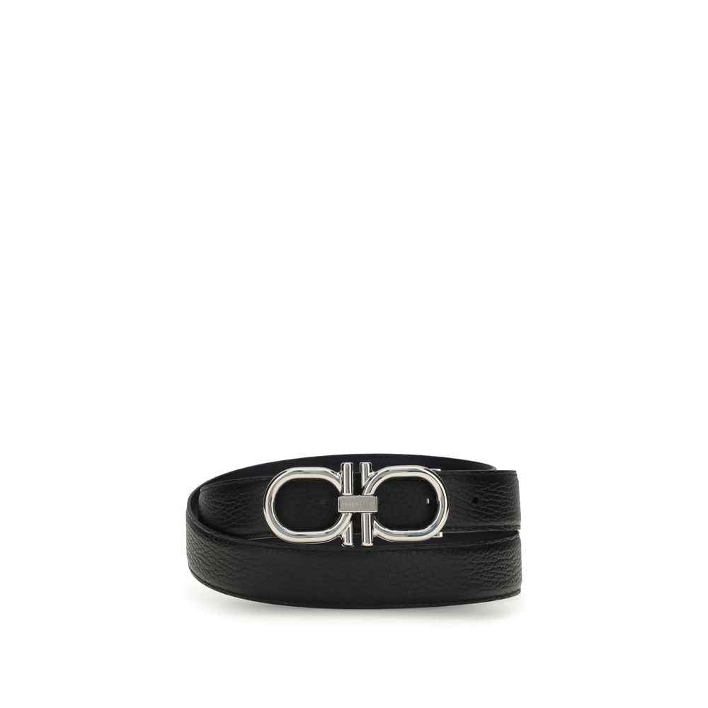 The Gancini reversible Belt combines versatility with contemporary style. The stitched strap lends a casual touch, while the palladium-finish buckle, with stylized double Gancini, adds elegance. Complemented by a central engraved signature plaque, it is adjustable in length for a tailored fit.