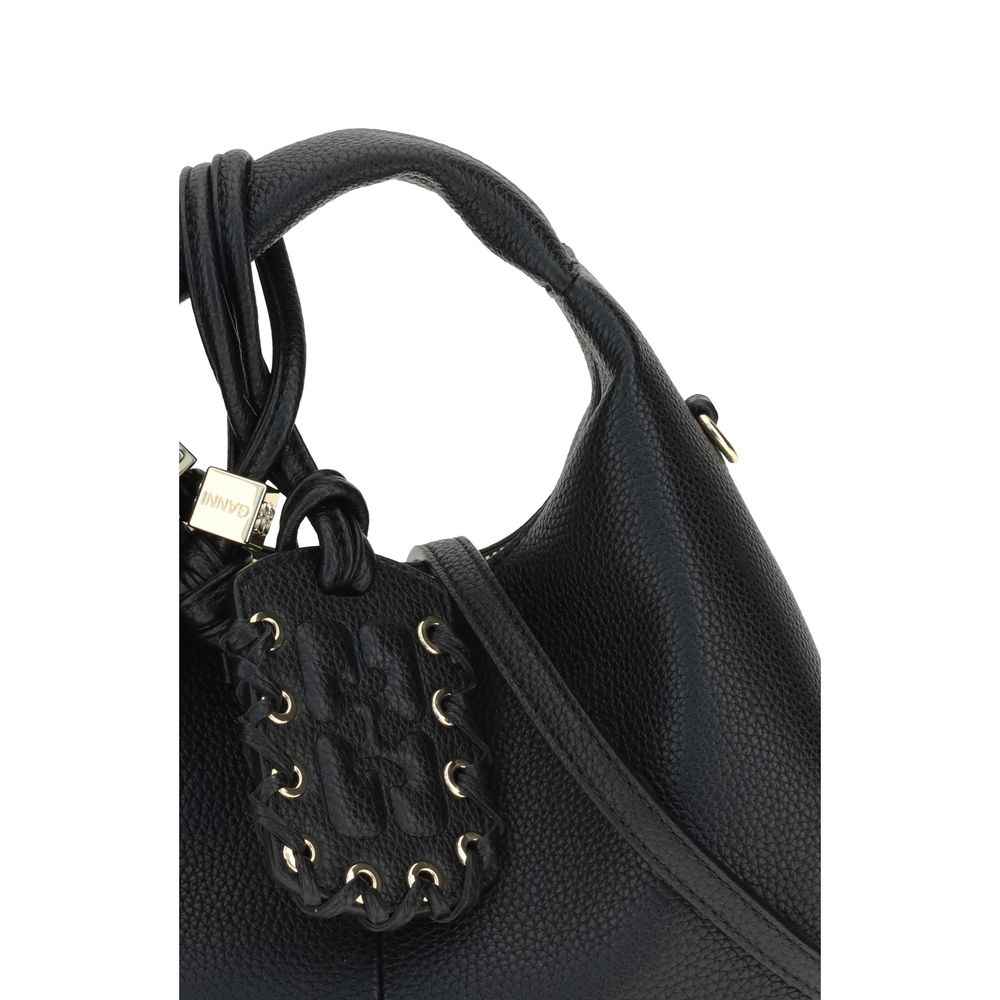 Hobo mini Handbag by Ganni is a compact and modern accessory made with grainy texture. Featuring a top handle and an adjustable and removable shoulder strap, it combines style and practicality. A gold-tone GANNI butterfly logo decorates the front, while the back features an embossed logo. The zipper closure protects a single compartment with an interior patch pocket. Engraved metal nuts and a mirrored label complete the design.