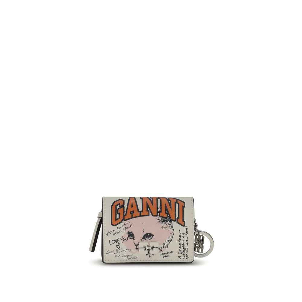 Ganni’s Kitty Card Holder is a compact and playful accessory decorated with a graphic print of a kitten. Featuring a silver-colored key ring with engraved logo, it features the distinctive metal GANNI butterfly logo and multiple card compartments. Perfect for adding a touch of originality to everyday life.