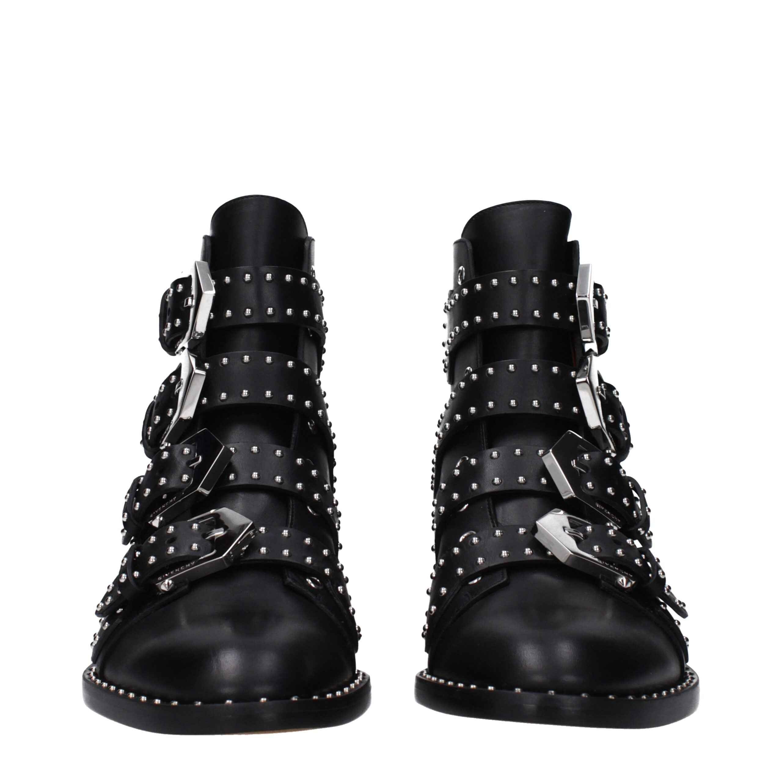 Elevate your footwear collection with Givenchy Black Leather Ankle Boots. Crafted from premium black leather, these boots combine style and comfort for a casual yet sophisticated look. Featuring a unique stud design and a secure buckle closure, they are perfect for versatile styling.