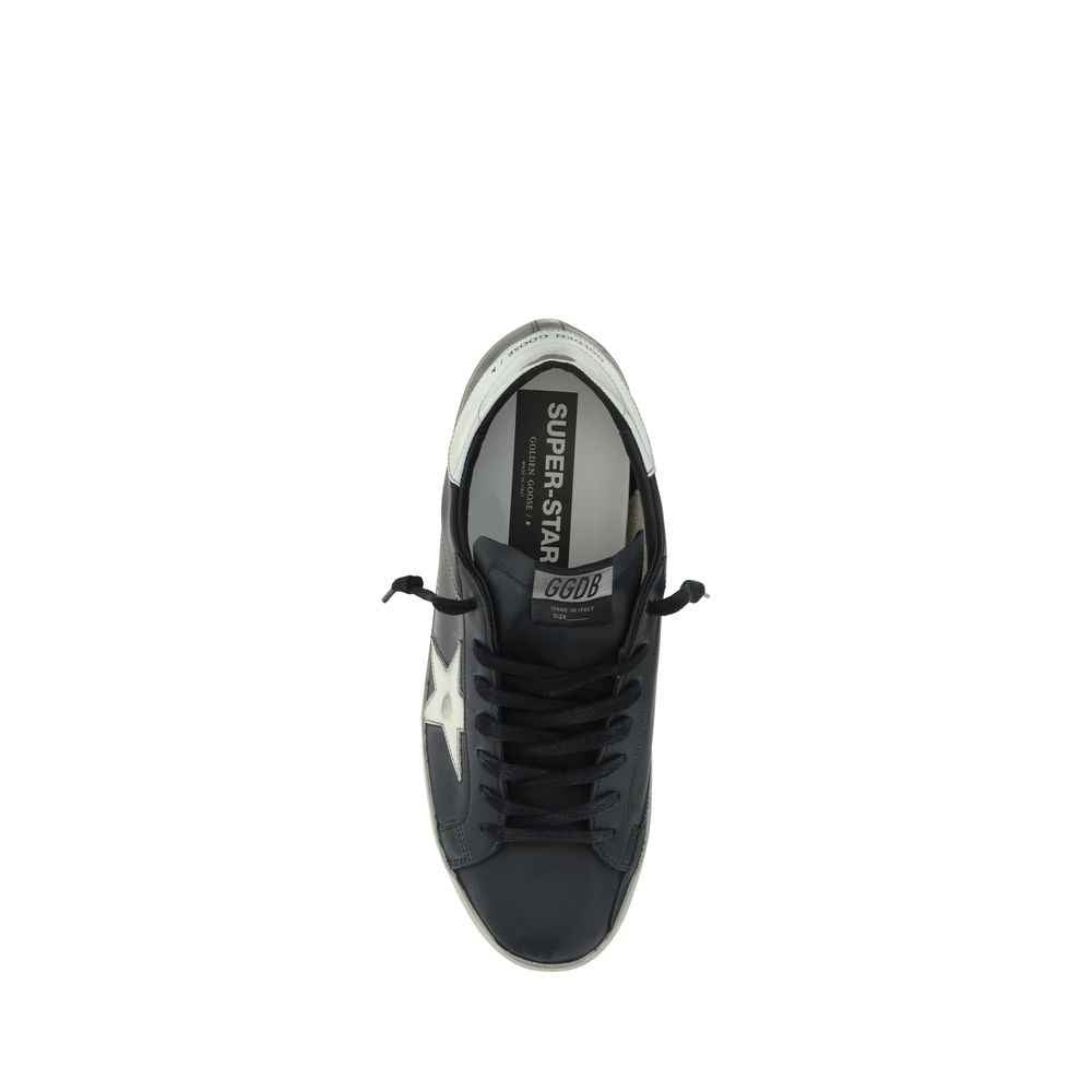 Goatskin Super Star Sneakers by Golden Goose, lace-up front closure, iconic star on contrasting side panel, round toe, flat sole, brand logo press-stud on outer side panel, brand logo press-stud on front tab.