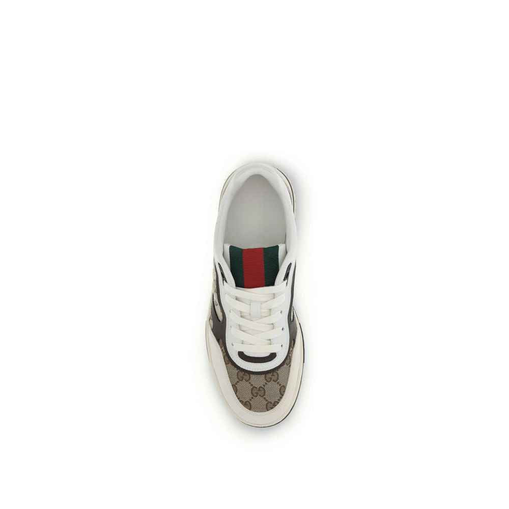 Re-Web Sneakers by Gucci are a blend of urban style and sophistication, with distinctive details that recall the brand’s identity. The front lace-up closure ensures a comfortable and adjustable fit, while the brand’s iconic signature is applied in contrast on the front tab, adding a recognizable touch. The brand’s signature GG logo is repeated all-over, creating an eye-catching visual effect. The paneled design and flat sole complete the look, giving the sneakers a modern and versatile look.