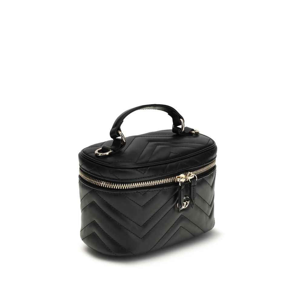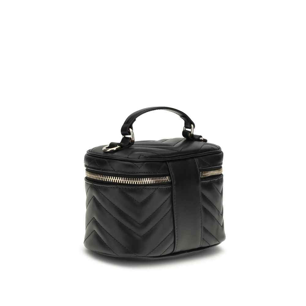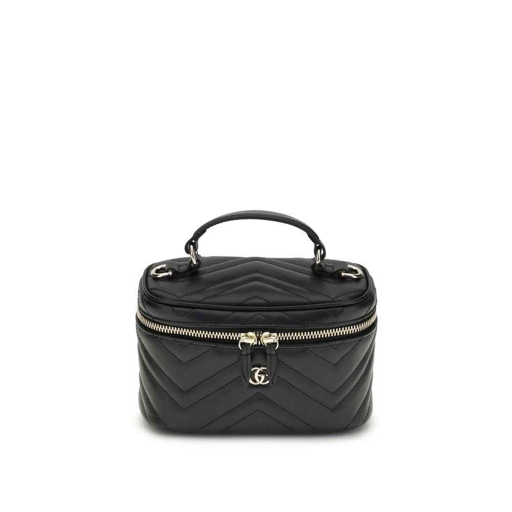 Gucci’s Vanity mini Shoulder Bag is a compact and sophisticated accessory made of black matelassé leather with the iconic chevron pattern. Light gold hardware enhances the design, while the black taffeta lining adds a touch of inner elegance. Topping it off is the emblematic double G on the front, the distinctive symbol of the maison.