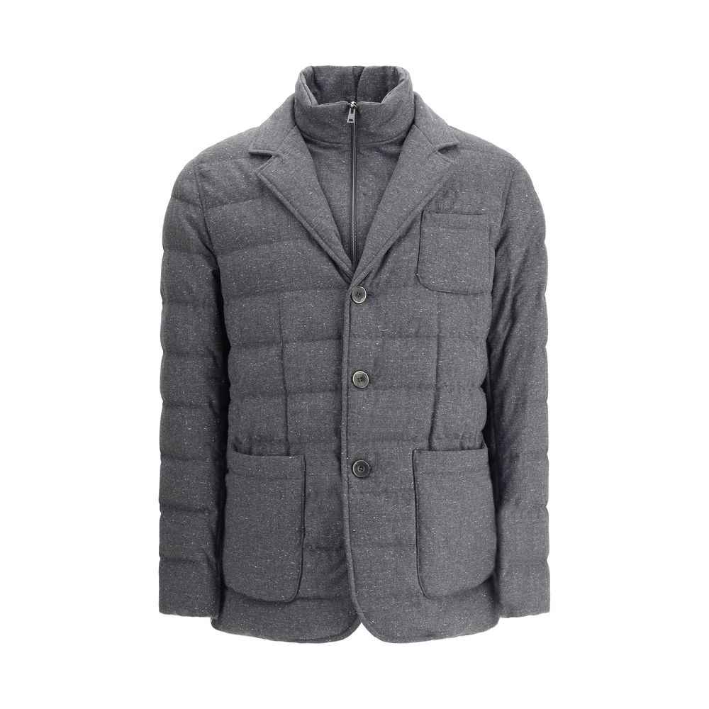 Herno’s Down Jacket with a design inspired by the classic blazer, made of wool with a mélange pattern. The model features classic lapels, front button closure and a removable zippered inner part that offers added protection and versatility. Applied welt pockets on the front, quilted design and warm but lightweight padding complete the garment. A perfect blend of sartorial elegance and outdoor functionality.
