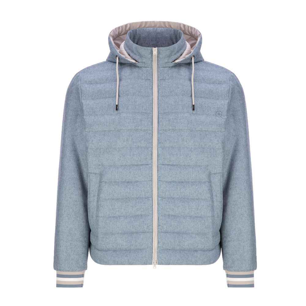 Elevate your outerwear collection with Herno’s sumptuous blend of silk and cashmere in this luxurious down jacket. Meticulously crafted in Italy, this piece merges sophistication with functionality, featuring a sleek hood with drawstring, a secure zipper closure, and convenient side pockets for a blend of comfort and style. Adorned in a rich blue hue, this Herno creation is an essential statement for the modern man who values elegance and quality.
