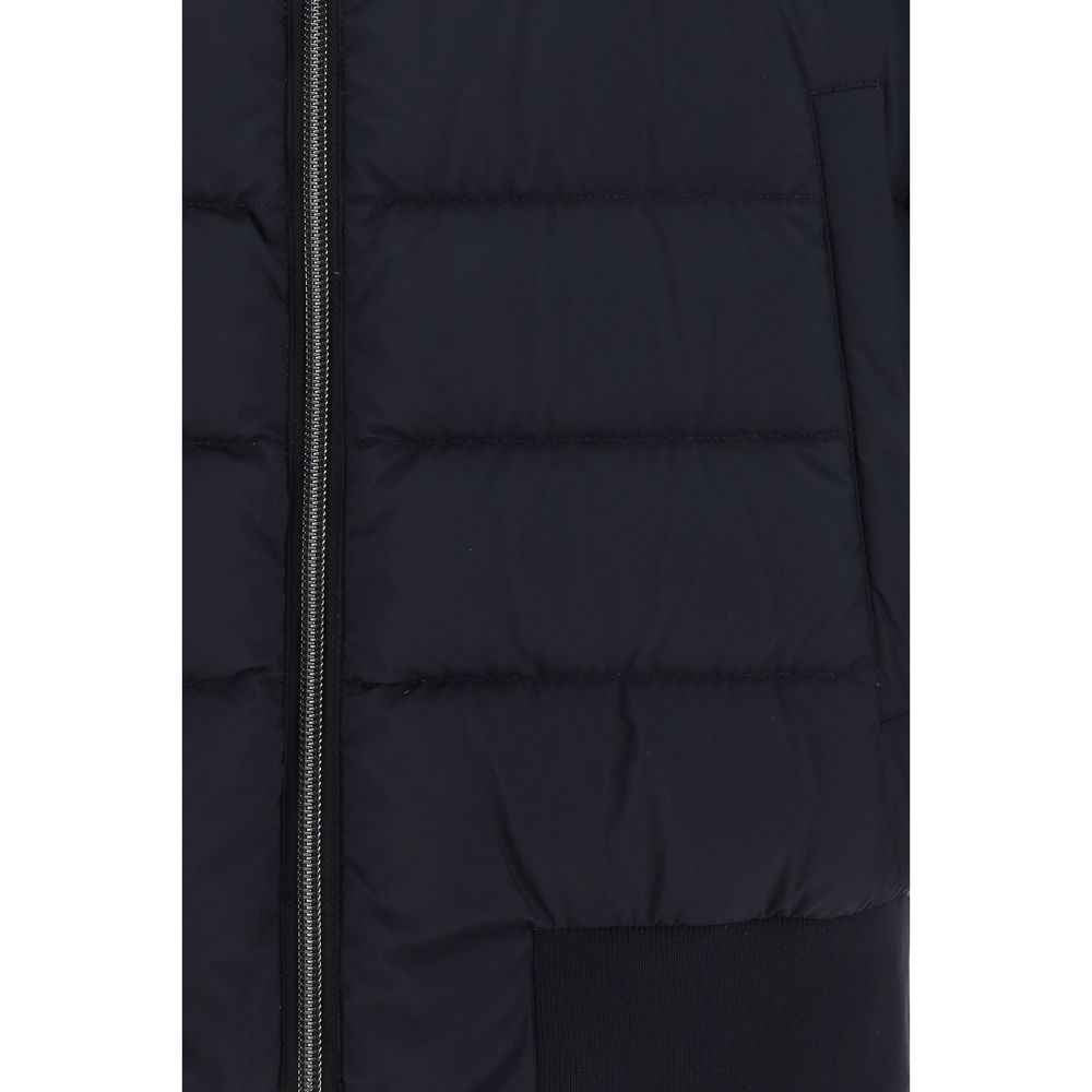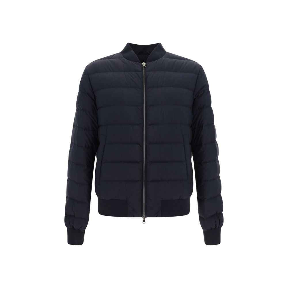 Down Jacket by Herno, ribbed collar, front closure by double-slider zipper, two welt pockets with side snap buttons, elastic ribbed cuffs, ribbed hem, all-over quilted and padded design, monochrome pattern, regular fit.