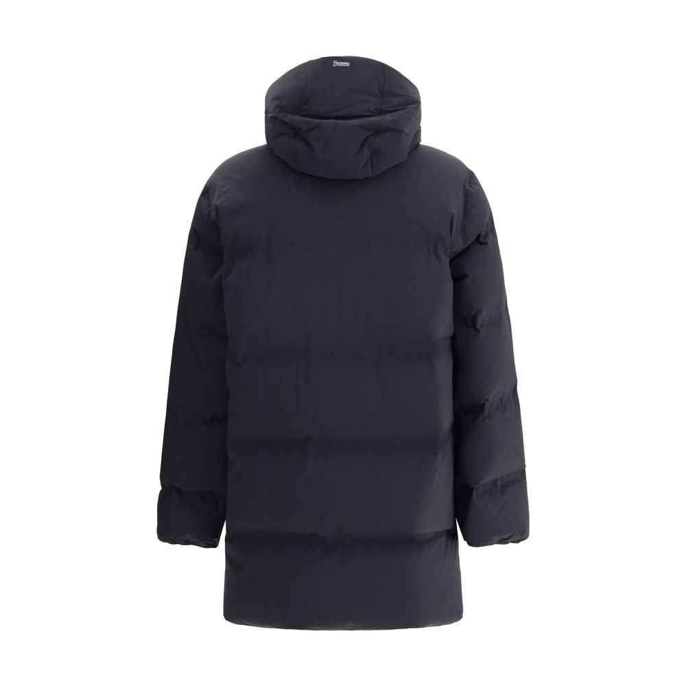 Herno’s Down Jacket features a high collar and hooded design for complete protection from the cold. The front closure features a double-slider zipper, while two welt pockets with side zippers provide convenience. Elasticized cuffs ensure comfort, and an adjustable hem with internal drawstring allows for a customized fit. The all-over quilted and padded design ensures warmth and style in every detail.