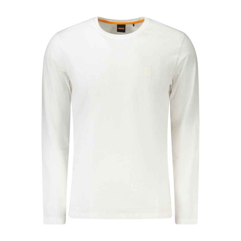 Elevate your wardrobe with the epitome of sleek style – the Hugo Boss long-sleeved T-shirt. Exuding confidence with its clean white hue and unmistakable embroidered logo, this crew neck masterpiece infuses a touch of luxury into your everyday attire. Perfectly crafted from the finest cotton, it promises both comfort and a distinguished silhouette. Make a bold statement in the essence of trendy sophistication.