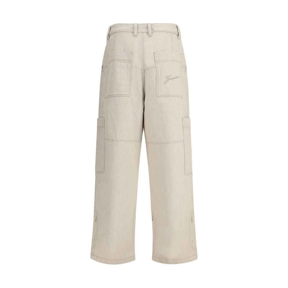 The Carré de-Nîmes cargo Jeans bring a contemporary twist to a utility classic. Crafted from soft cotton and hemp denim, they feature a high waist with engraved metal button closure and belt loops. Wide, straight legs are reinforced with stitched details at the knees, emphasizing durability and style. Oblique front pockets, applied side cargos, and laser-printed back pockets combine practicality with urban edge, while an embroidered patch on the back delivers a refined signature touch. A perfect balance between modern design and workwear heritage.