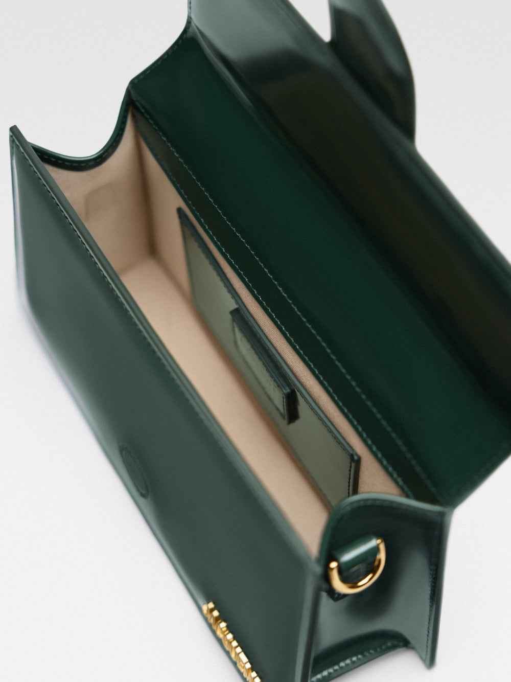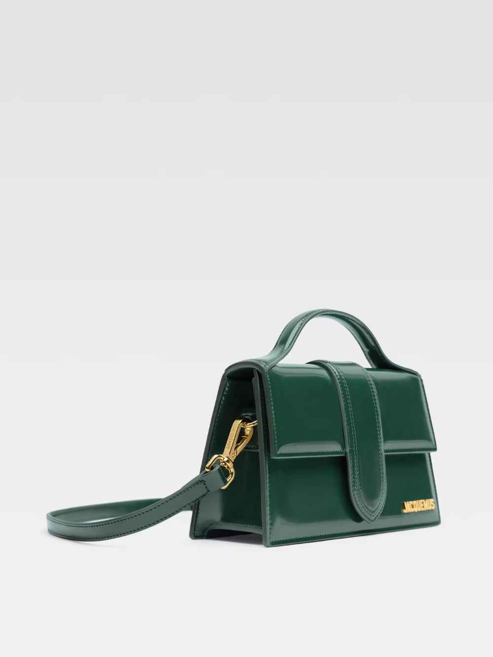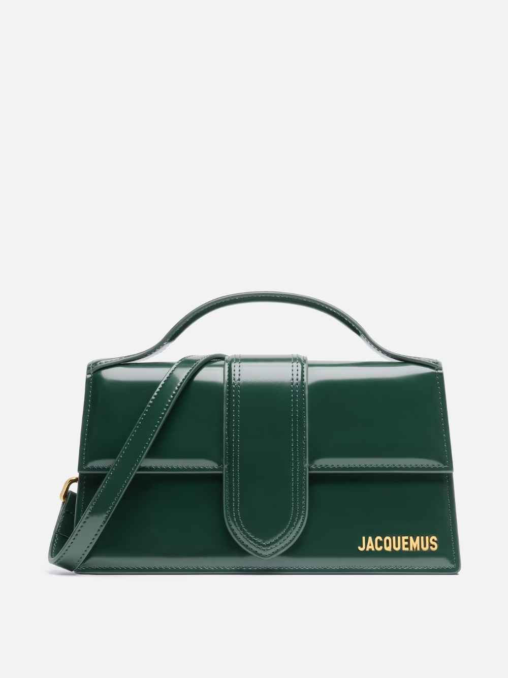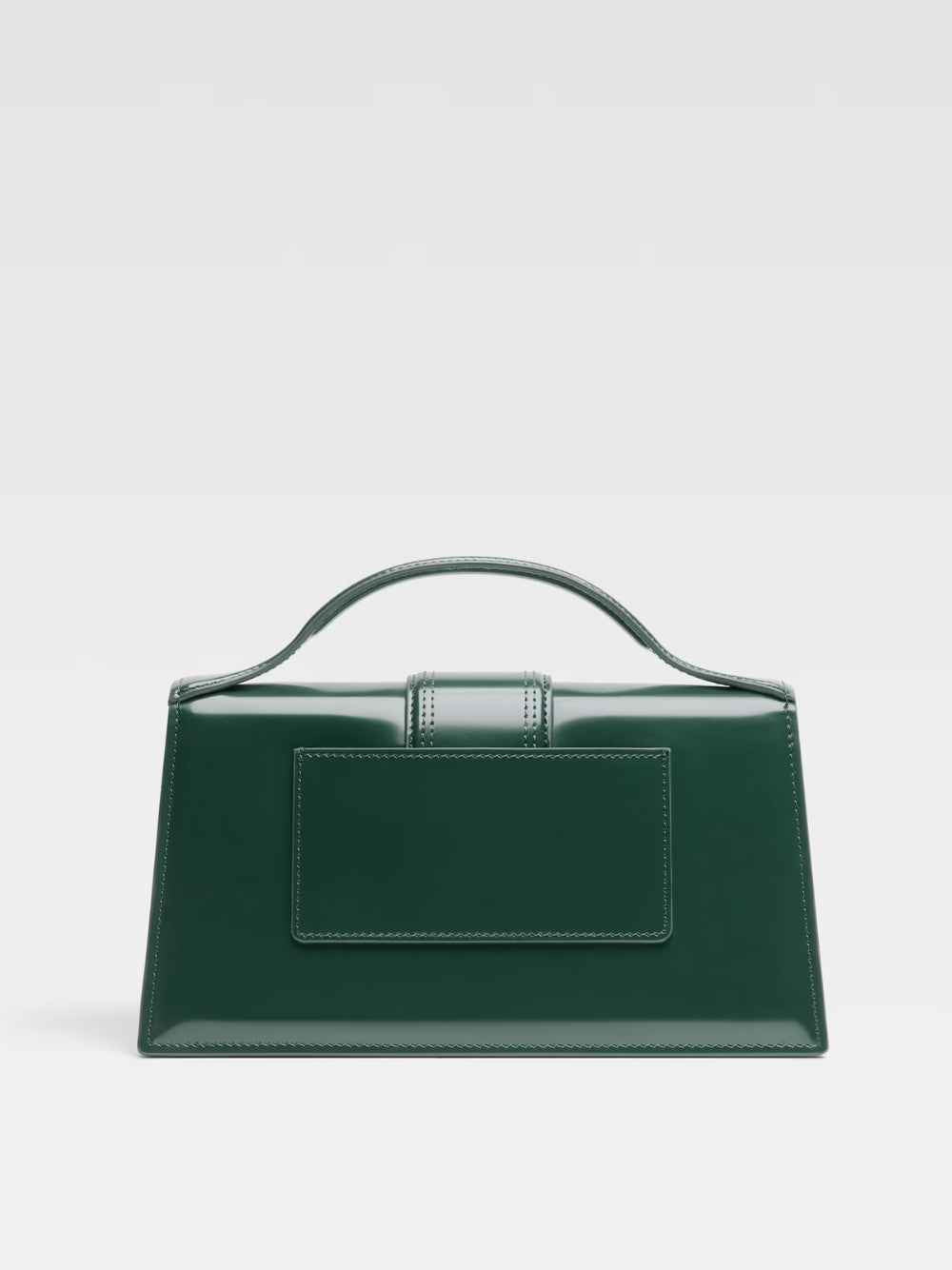 Elevate your style with the Jacquemus Le Grand Bambino Dark Green Bag. Crafted from premium leather, this stunning piece features a chic dark green hue complemented by elegant gold hardware. Its sleek design includes: