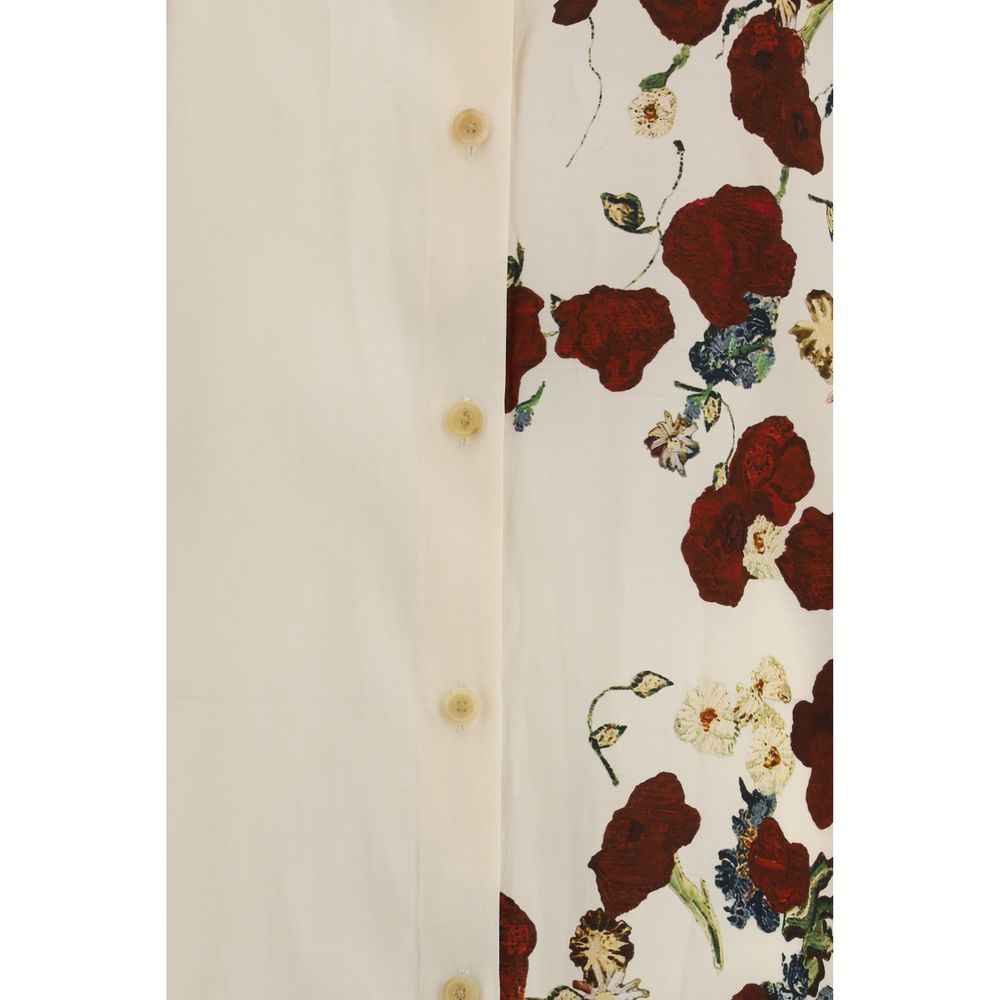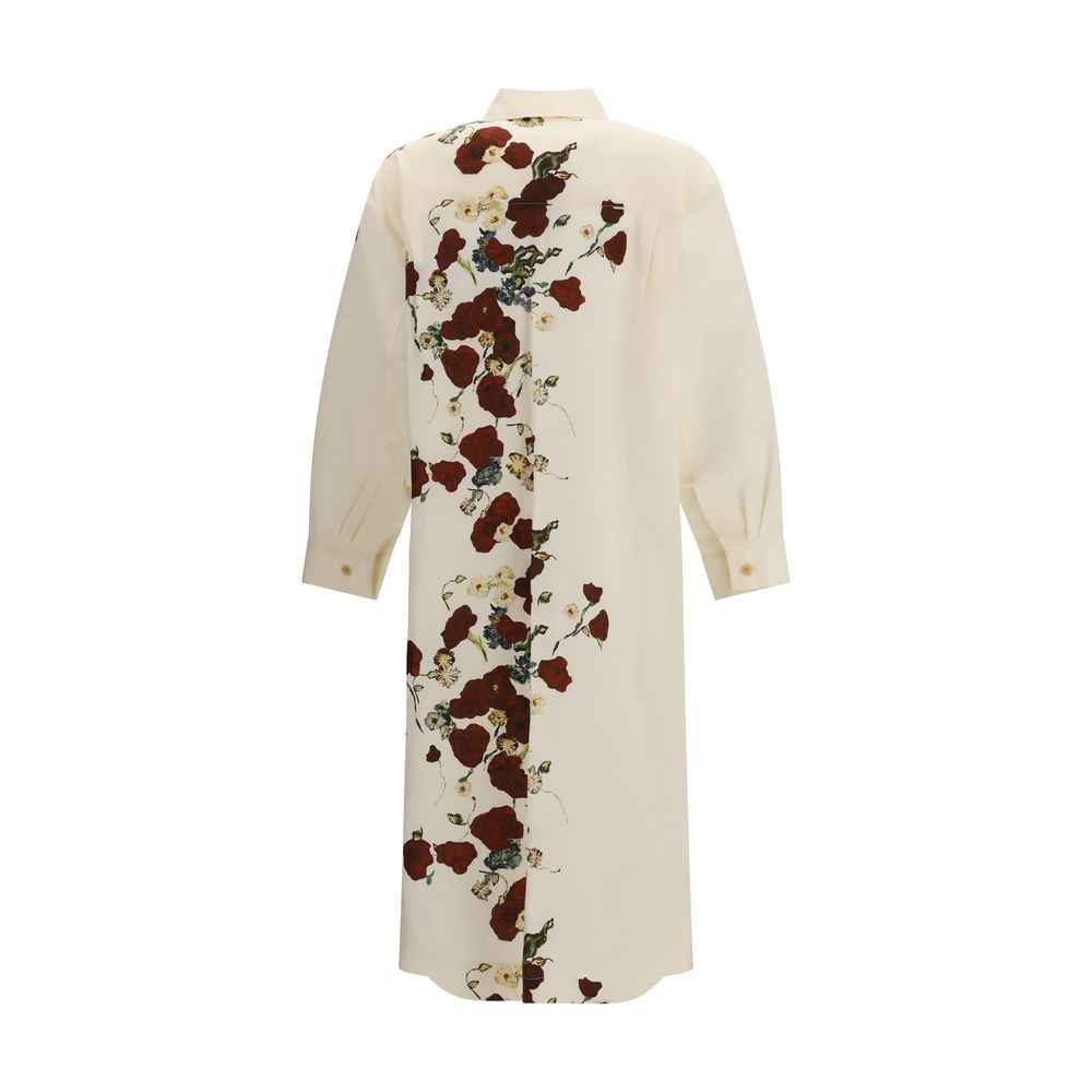 The Gloria shirt Dress by Khaite is an elegant and sophisticated garment that reinterprets men’s shirts with a soft and modern silhouette. The curved back creates a cocoon shape, giving volume and movement to the design, while the dropped shoulder seams and exaggerated swallowtail hem with side slits add a distinctive and contemporary touch. The back yoke and buttoned cuffs complete the look, lending it a discreet yet decisive elegance.