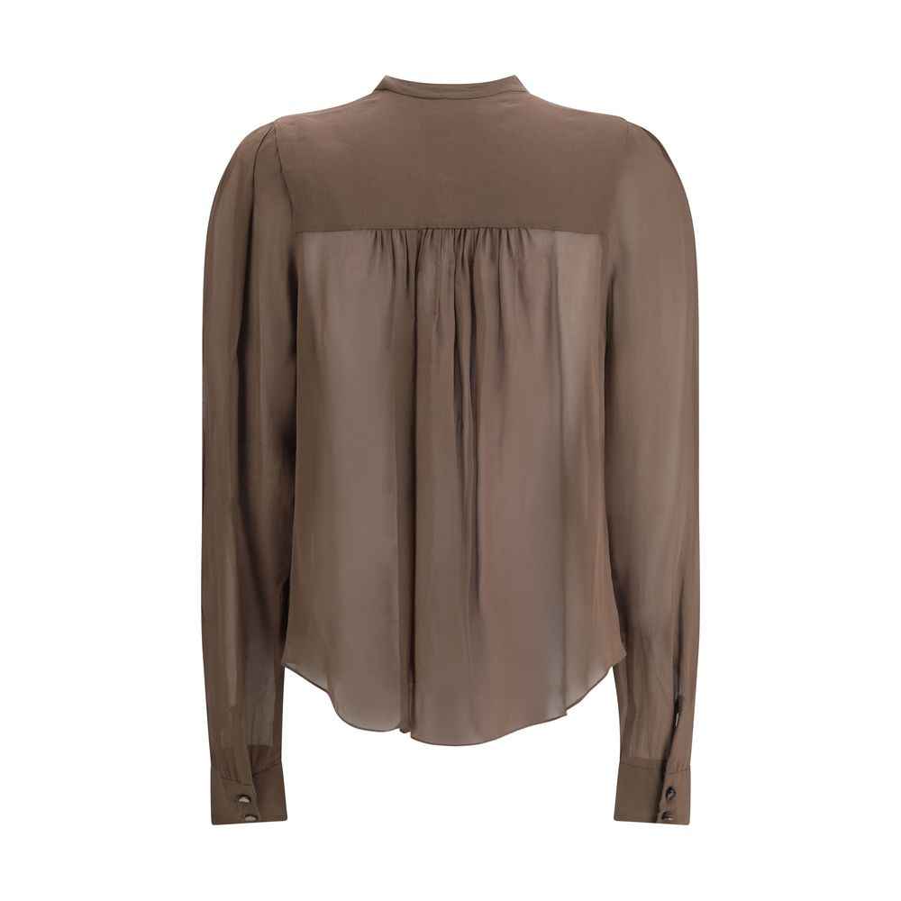 Noeline shirt by Marant Étoile with a romantic and contemporary appeal. The model features a front button closure, adjustable button cuffs and a slightly semi-transparent design that lends lightness and femininity to the garment. The shoulders are embellished with elasticated ruffles that add a delicate and distinctive touch. Perfect to pair with tailoring pants or denim for a refined and versatile look.