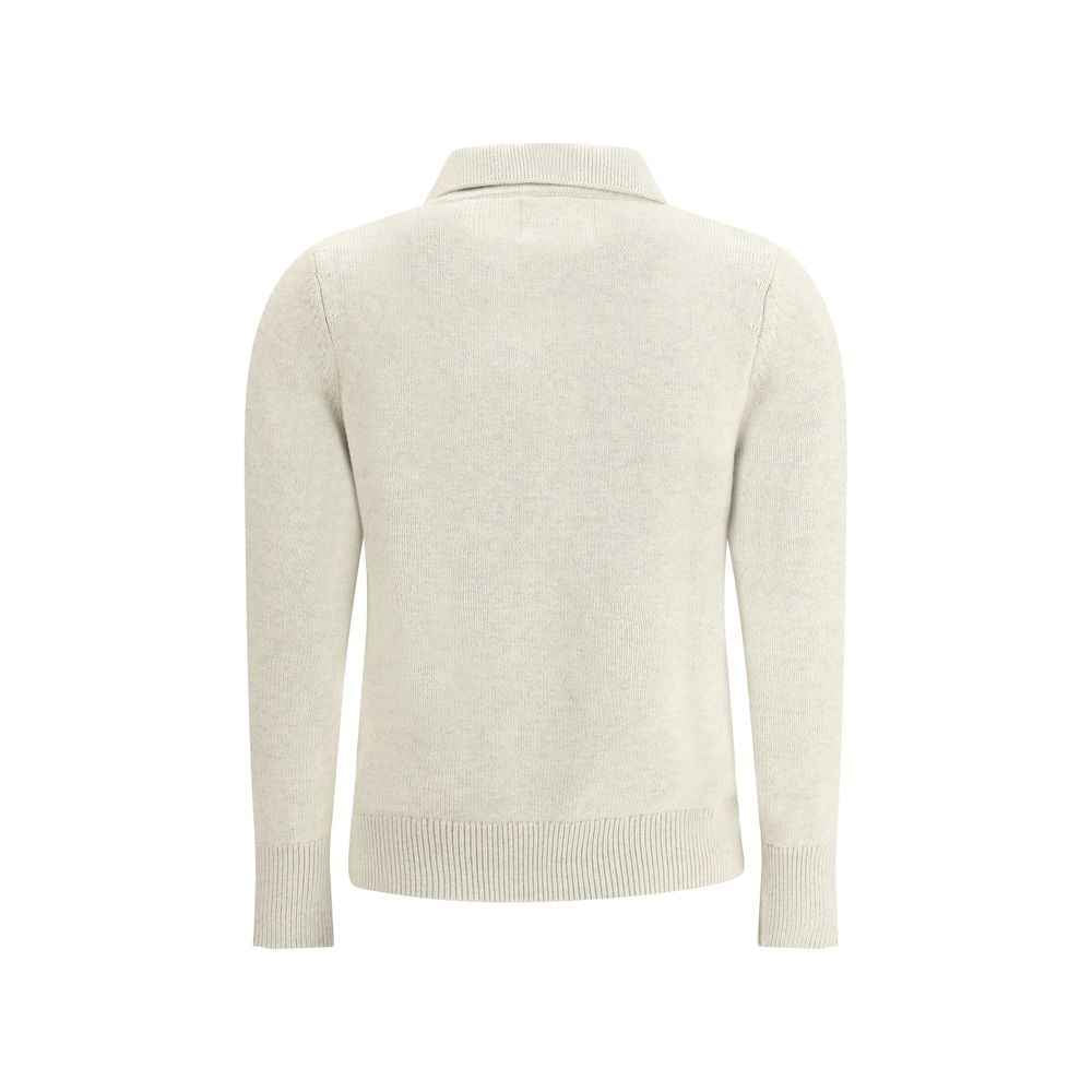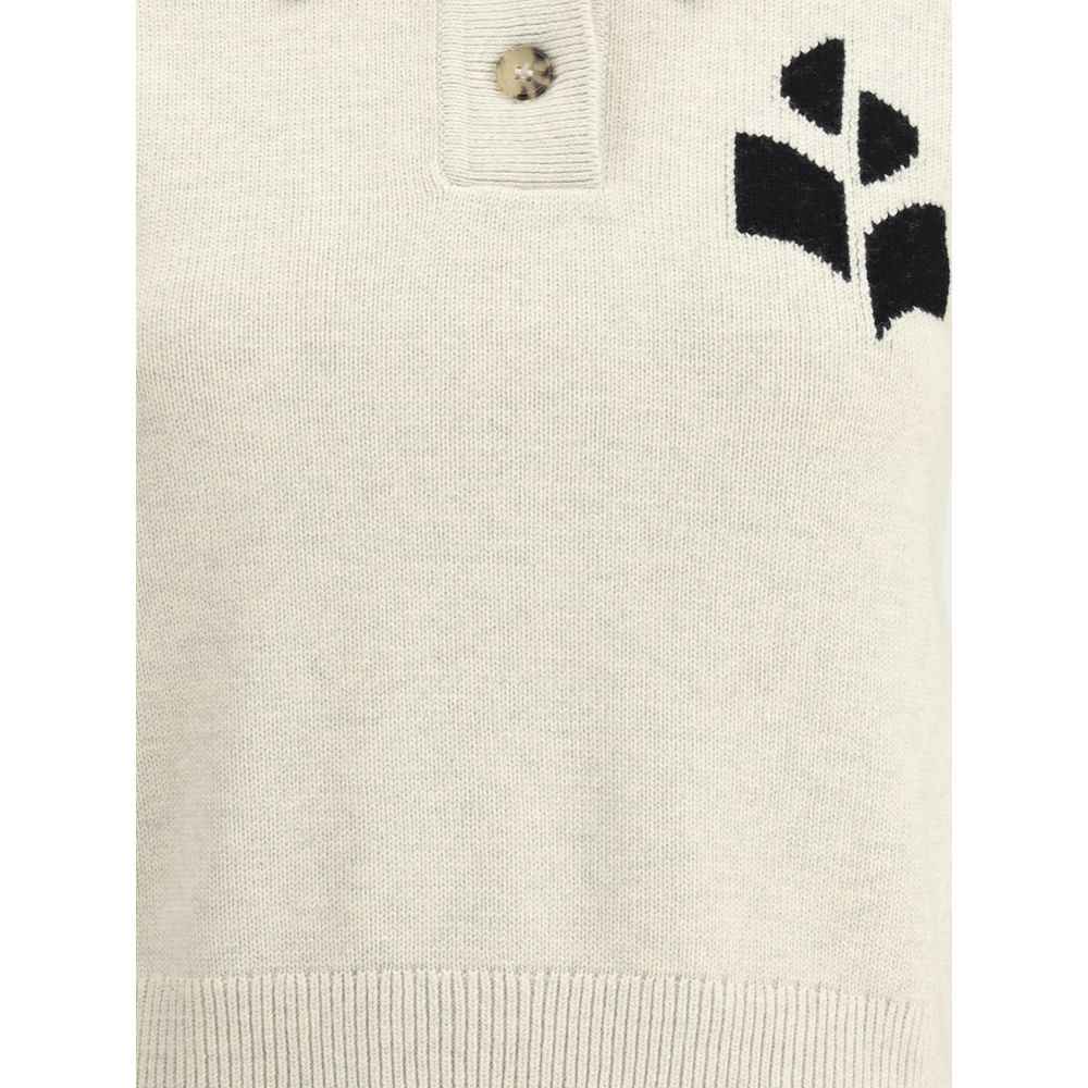 Cotton Nola Sweater by Marant Etoile featuring classic collar, button-front closure, contrasting iconic brand logo on front, ribbed cuffs, ribbed hem, mélange pattern, regular fit.