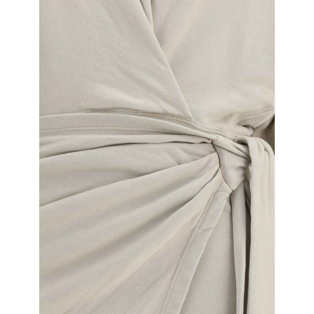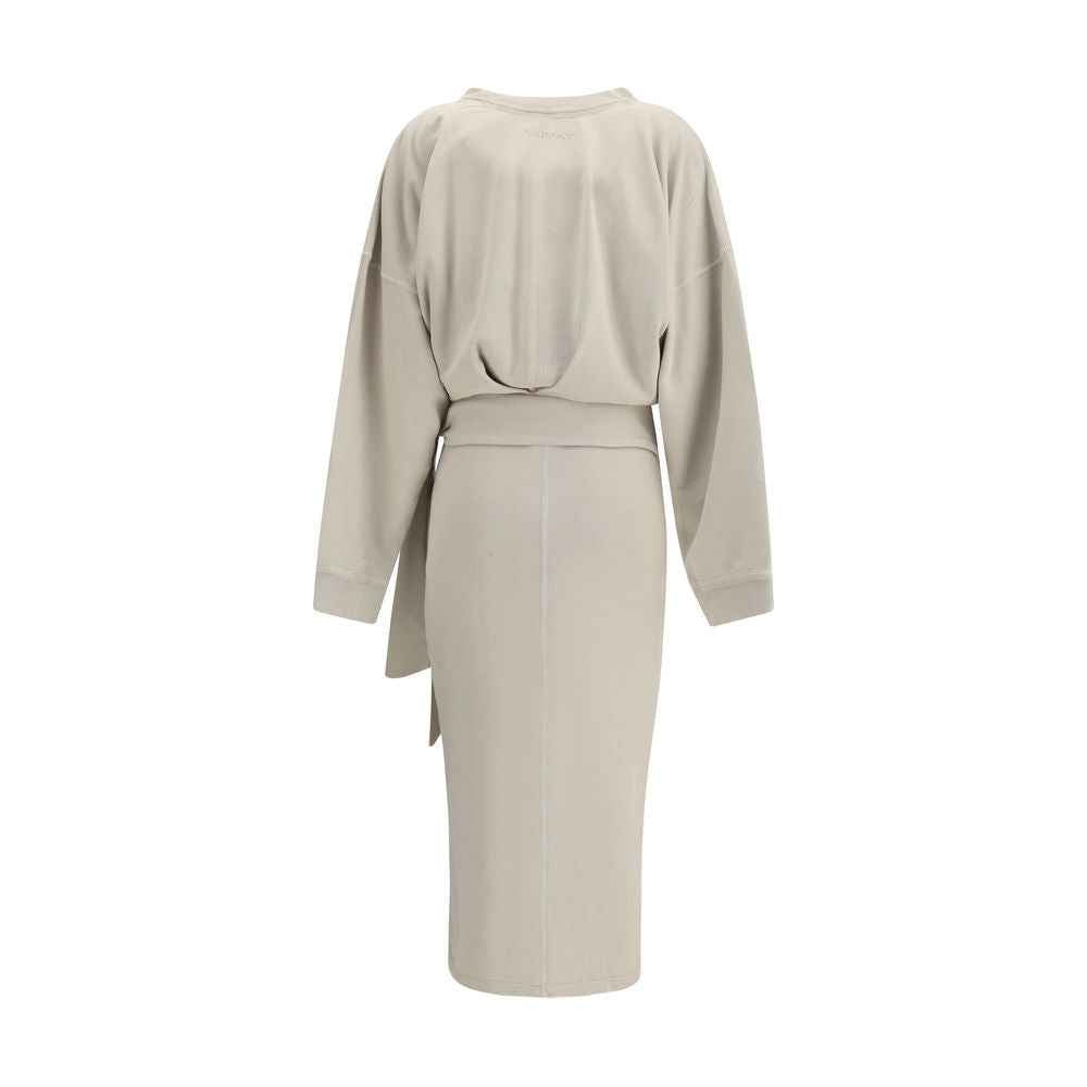 The Sandrina Dress by Marant Étoile reinterprets casual style with a feminine and contemporary twist. Crafted from solid-color cotton jersey, it features a round neckline, long sleeves with dropped armholes, and ribbed trims on the neckline and cuffs. The silhouette is distinguished by the wrap skirt tied at the waist, which creates a natural drape and flatters the figure. The embroidered “Marant” logo on the back adds an iconic detail. This long dress has a relaxed fit yet is fitted at the waist, perfect for a casual and polished look.