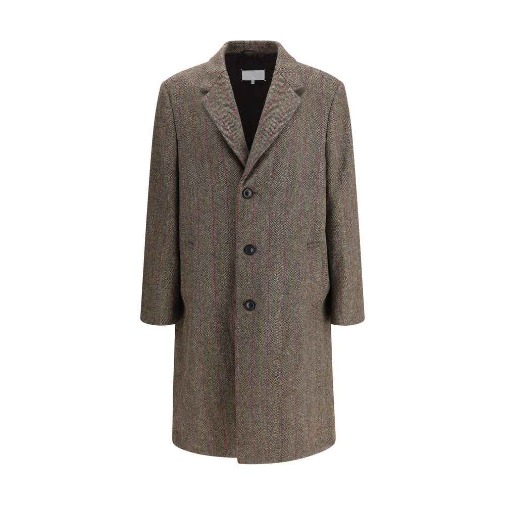 The Single-Breasted Wool Coat by Maison Margiela redefines elegance through structure and refinement. The classic lapel collar and front button closure create a timeless, clean silhouette, while the front welt pockets offer subtle functionality. Crafted from soft wool, this piece embodies the Maison’s minimalist sophistication, making it a refined essential for the modern wardrobe.