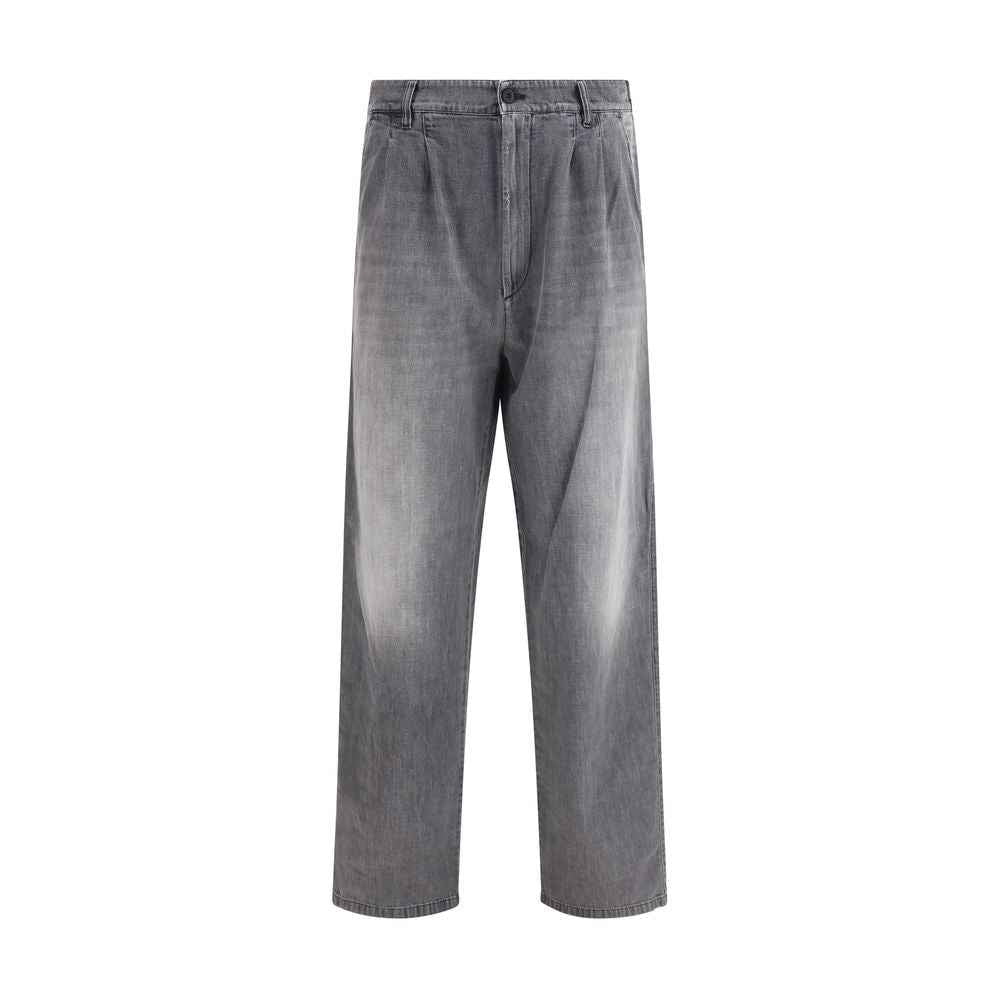 The washed-effect Jeans by Maison Margiela feature a concealed waistband closure with button and the brand’s signature four stitches on the back. The design includes belt loops, two front welt pockets, and additional welt pockets with buttons, creating a clean and contemporary look.