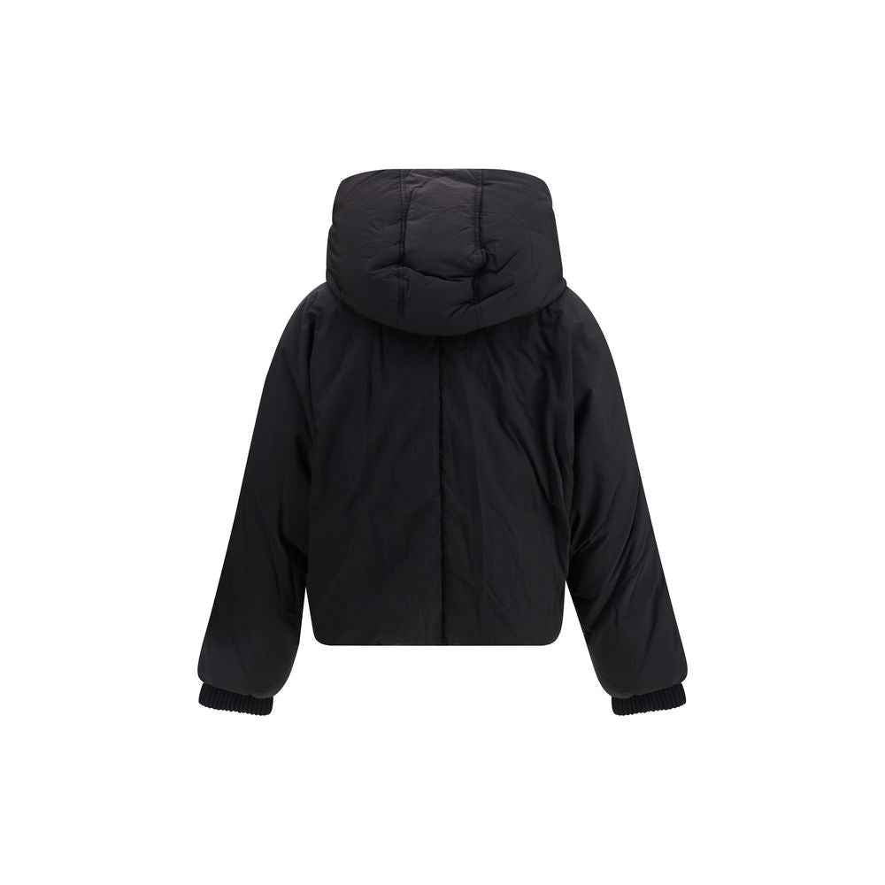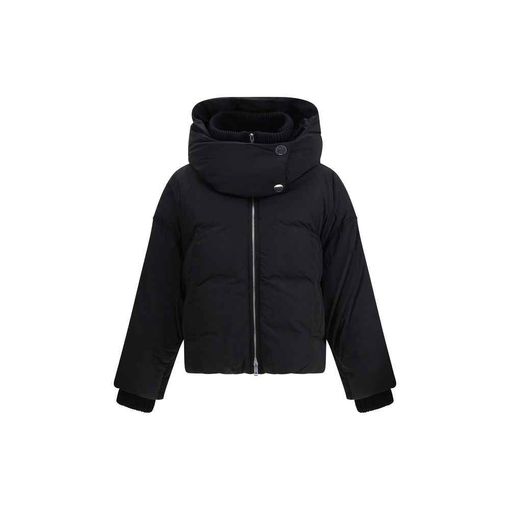 The Glizia Padded Jacket by Sportmax is crafted from technical fabric with a clean line and functional details. It features a high ribbed collar, ribbed elastic cuffs, a two-way front zip closure, and a removable hood secured with snap buttons. Side welt pockets complete the design with understated practicality. A piece that blends comfort and tailored precision, embodying Sportmax’s modern vision where elegance meets performance and refined structure.