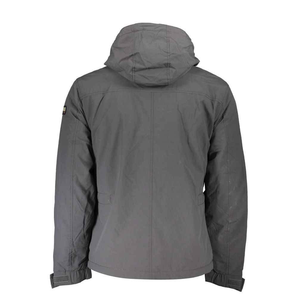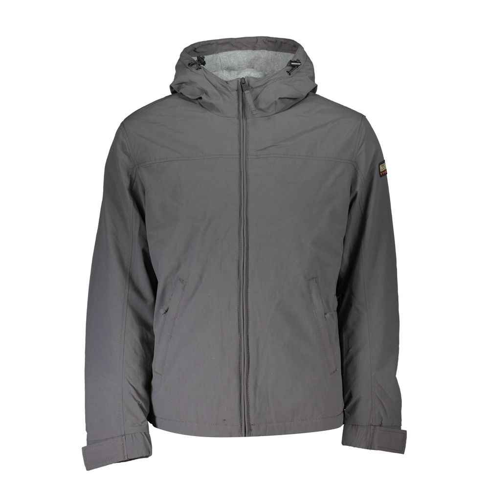 Elevate your outdoor ensemble with the bold Napapijri long-sleeved jacket, featuring an eco-conscious touch with its 70% recycled materials. This gray hooded masterpiece offers a snug fit with a waist drawstring, keeping you stylish even in the chill. Flaunt it with its slick zip closure, handy pockets, and the iconic Napapijri logo that pronounces your trendsetting vibes.