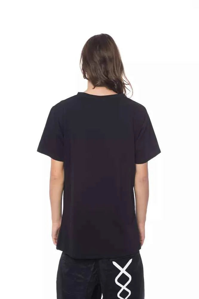 Indulge in the premium embrace of a Nicolo Tonetto masterpiece – the quintessence of striking style and comfort. This sleek black T-shirt, featuring a bold print that exudes confidence, is crafted with the finest cotton for a touch of luxury on your skin. Tailored in Italy, it boasts a timeless round neck and short sleeves, perfect for making a trendy statement in the urban jungle. Feel the difference quality makes with Nicolo Tonetto.
