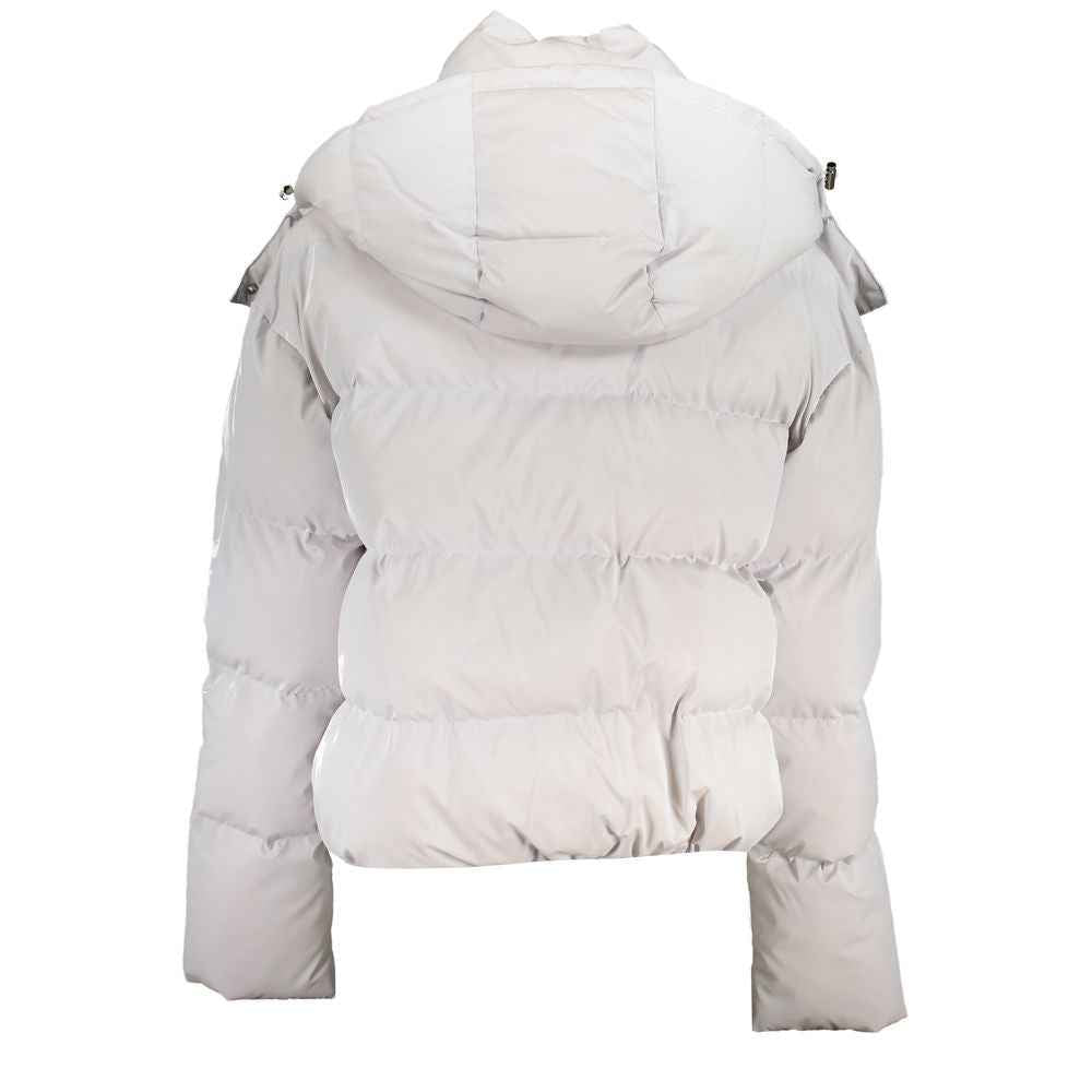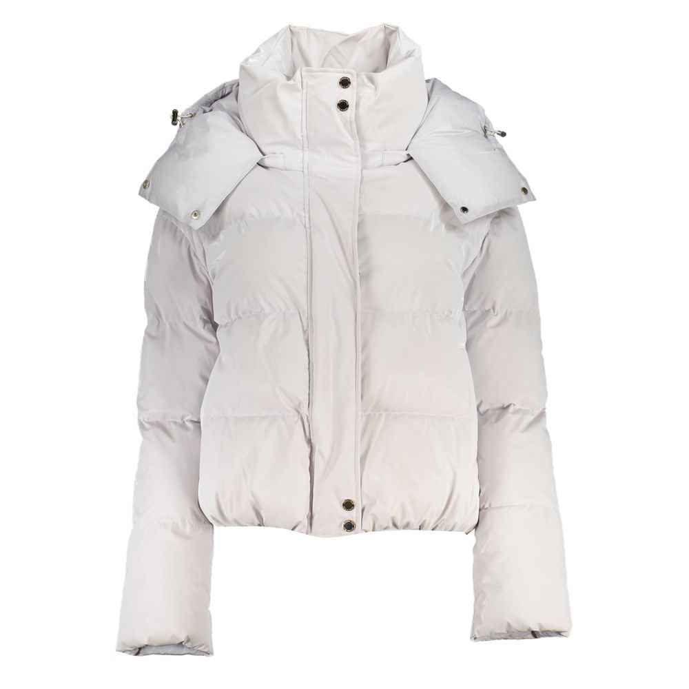 LONG SLEEVED JACKET WITH REMOVABLE HOOD, 2 EXTERNAL POCKETS, 1 INTERNAL POCKET, BUTTONS AND ZIP, LOGO