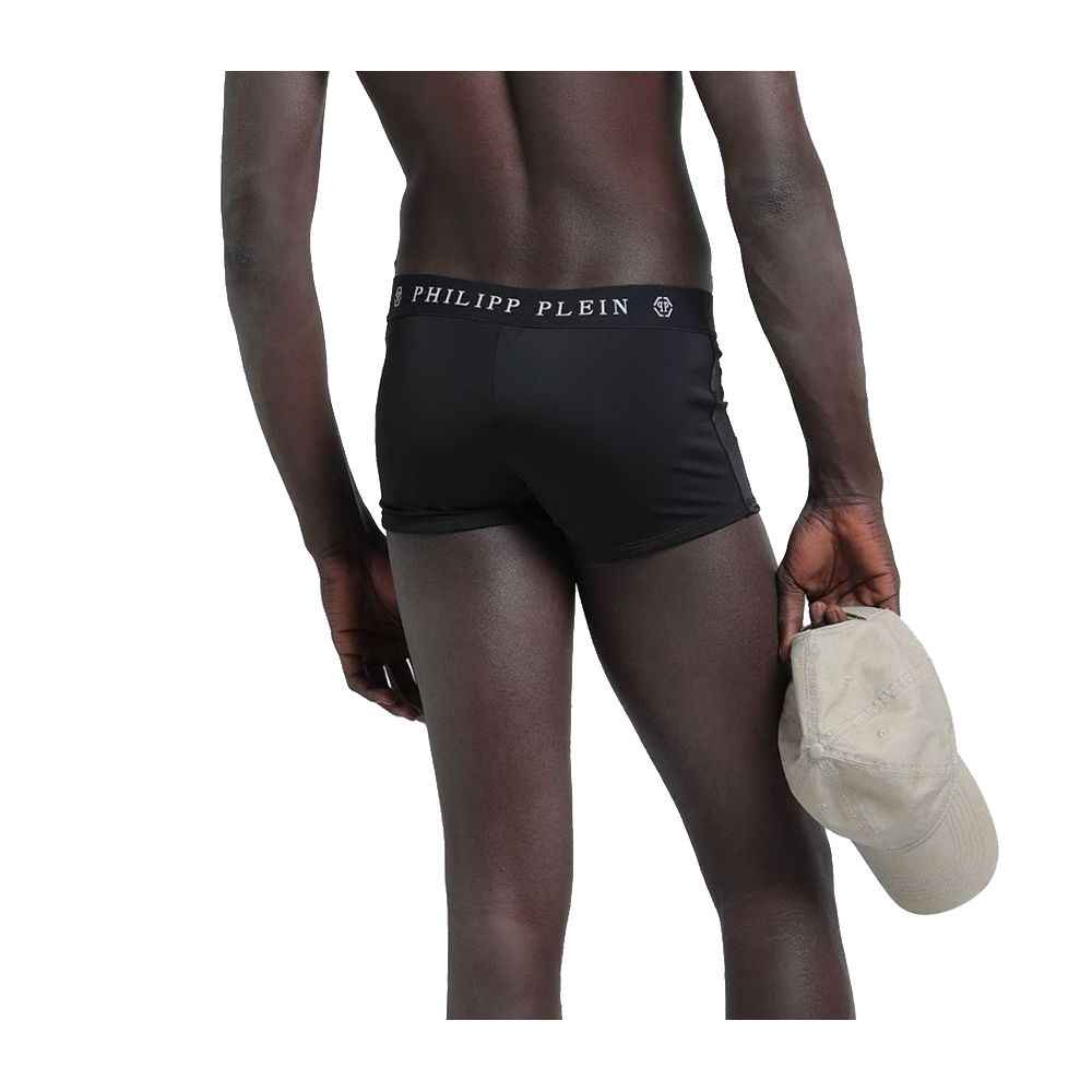 Exude confidence and embrace luxury with the latest Philipp Plein men’s boxer swim shorts, a blend of sleek design and superior comfort. Crafted from a high-quality polyamide and elastane mix for just the right stretch, these shorts feature a statement elastic waistband emblazoned with the iconic Philipp Plein logo. With a bold rubberized logo front and center, they exude an edgy vibe, perfect for the man who wants to stand out. Dive into style, where fashion meets function.