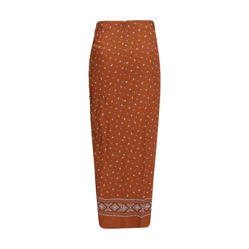 Pinko’s pareo Skirt is a piece with bold summer appeal, featuring a vibrant bandana pattern. The knotted front or side closure adds a dynamic touch to the design, while the back zipper ensures a secure fit. The above-ankle length makes it ideal for fresh, feminine looks.