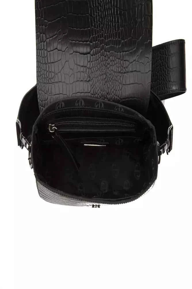 Elevate your fashion game with the Pompei Donatella Leather Crossbody Bag. Boasting a luxurious crocodile print and a sophisticated black hue, this bag is a testament to high fashion and bold choices. Complete with the brand’s signature logo lining and dustbag, it’s not just an accessory—it’s a statement. Perfectly sized to carry your essentials, it measures a chic 15x24x7 cm. Be the trendsetter you’re born to be with this stunning must-have!